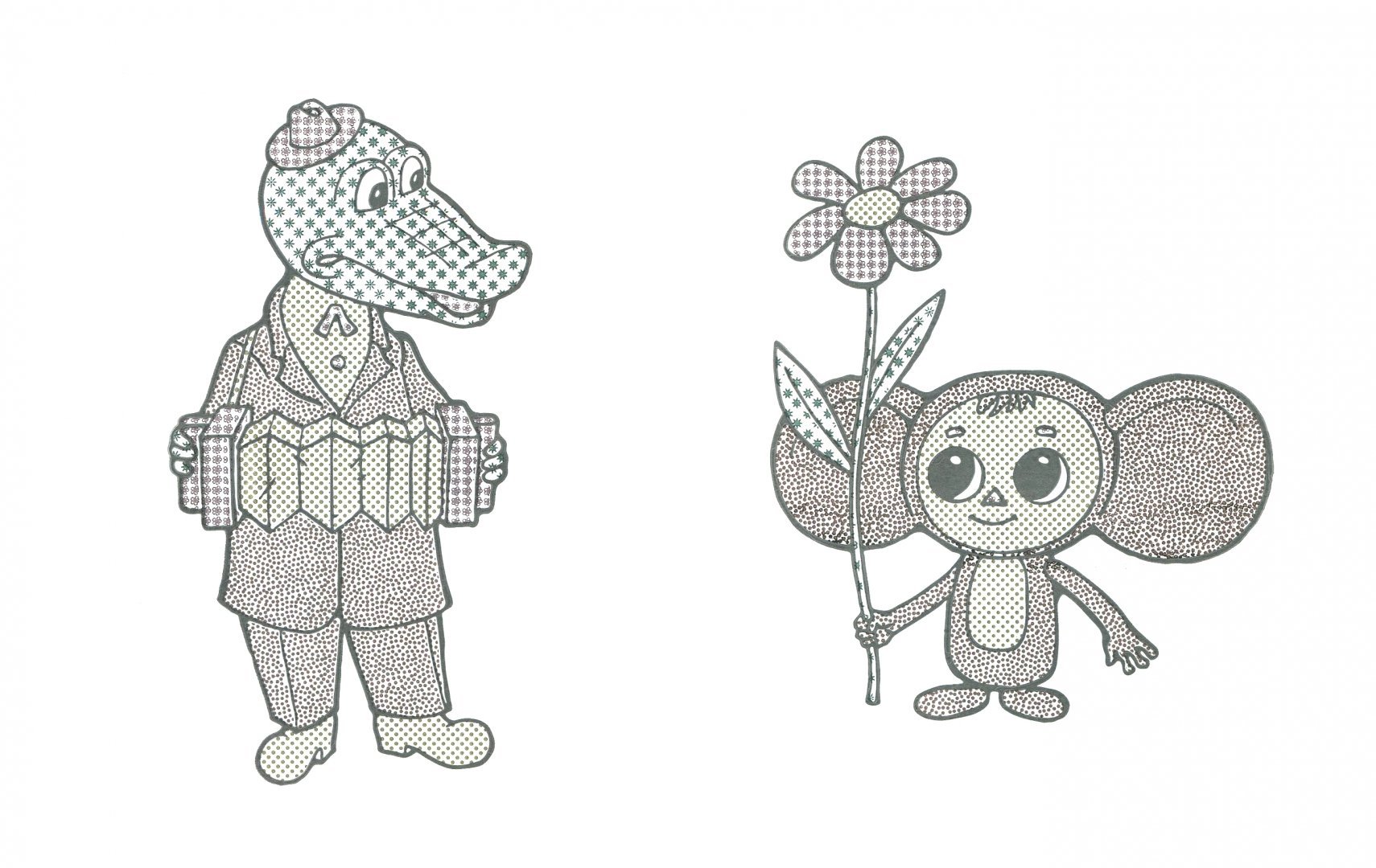 Чебурашка и крокодил Гена раскраски для детей