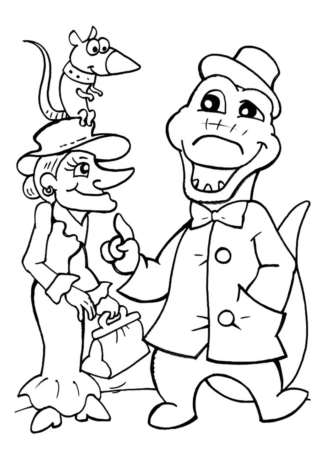 Раскраска Шапокляк и крокодил Гена