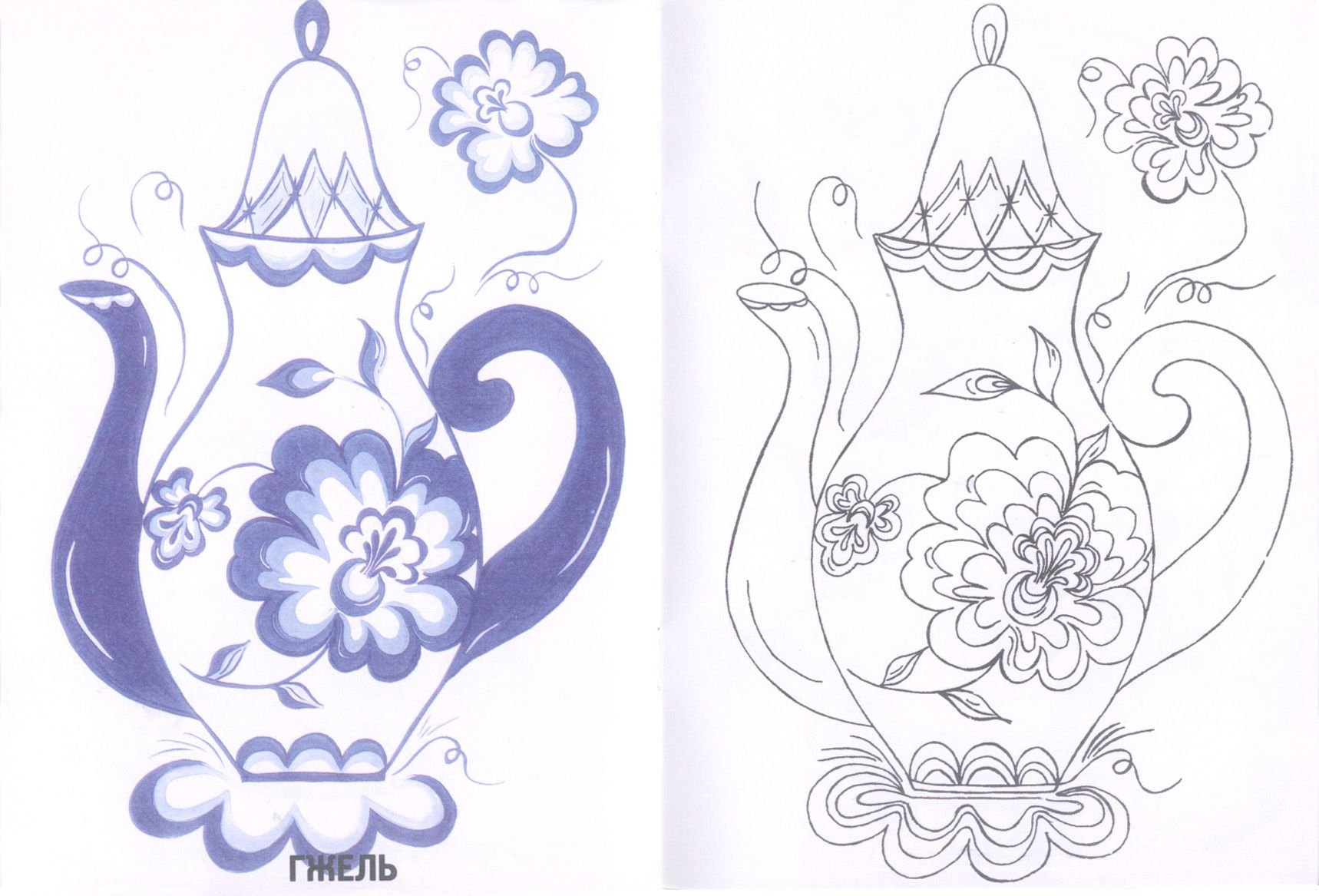Чайник Гжель раскраска