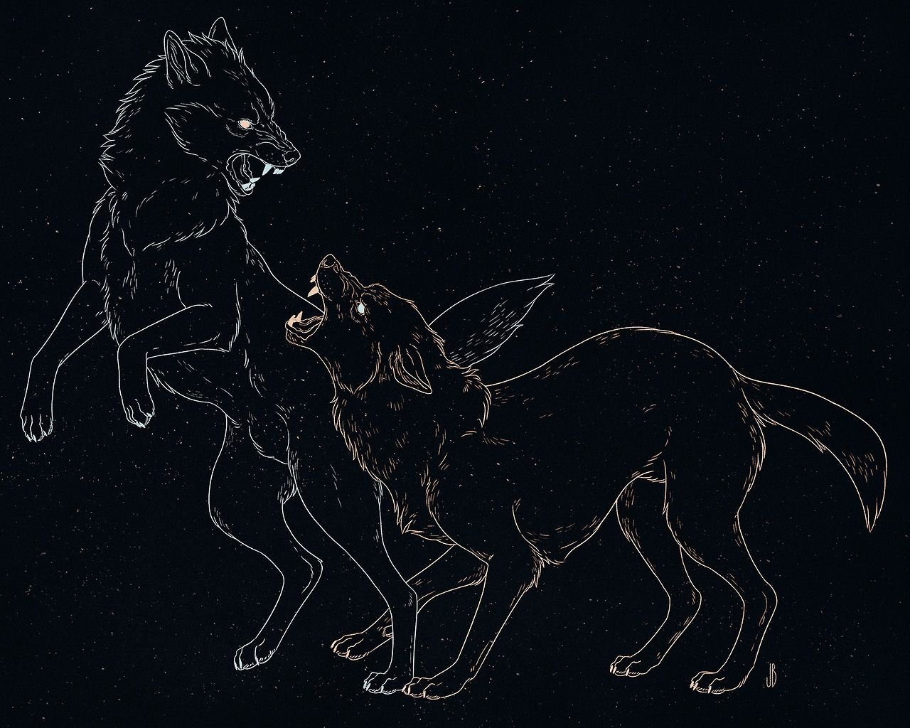 Волк и волчица арт