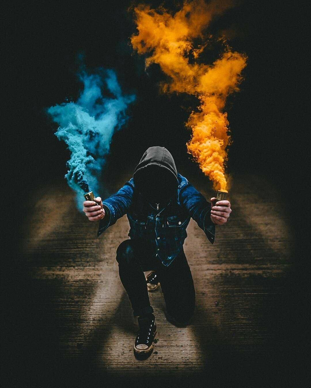 Парень с цветным дымом