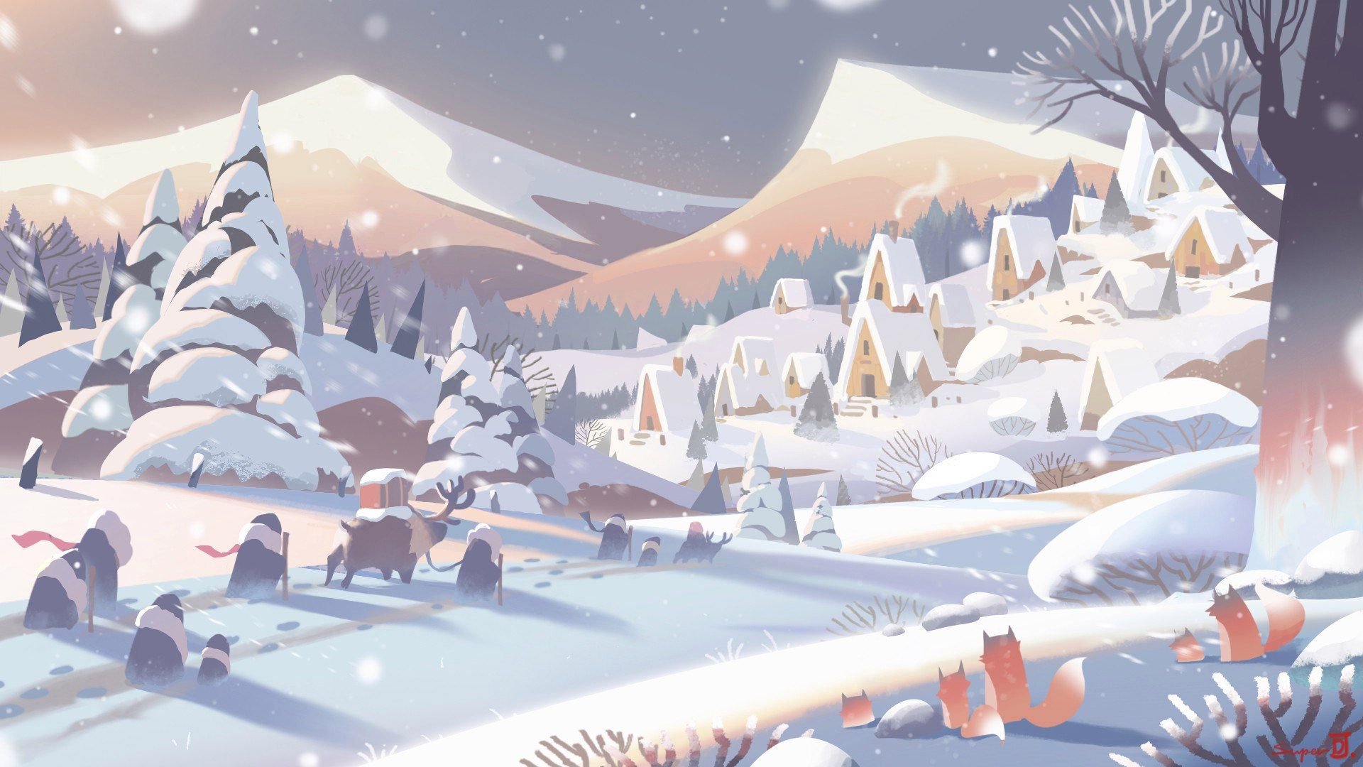 Зимний пейзаж мультяшный