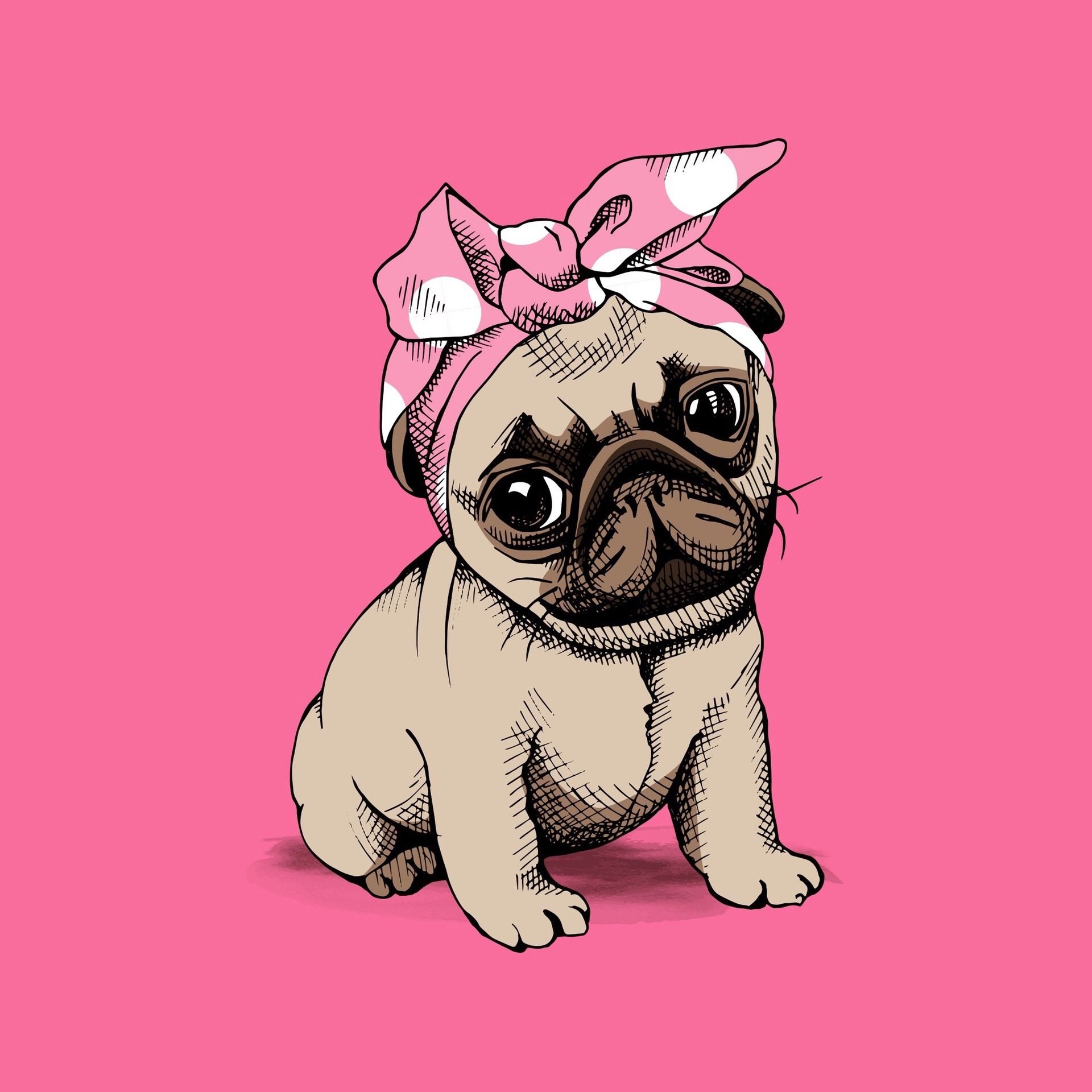 Мопс на розовом фоне