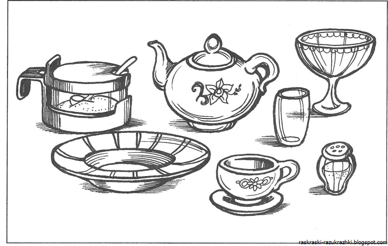 Раскраски посуда для детей 6-7 лет