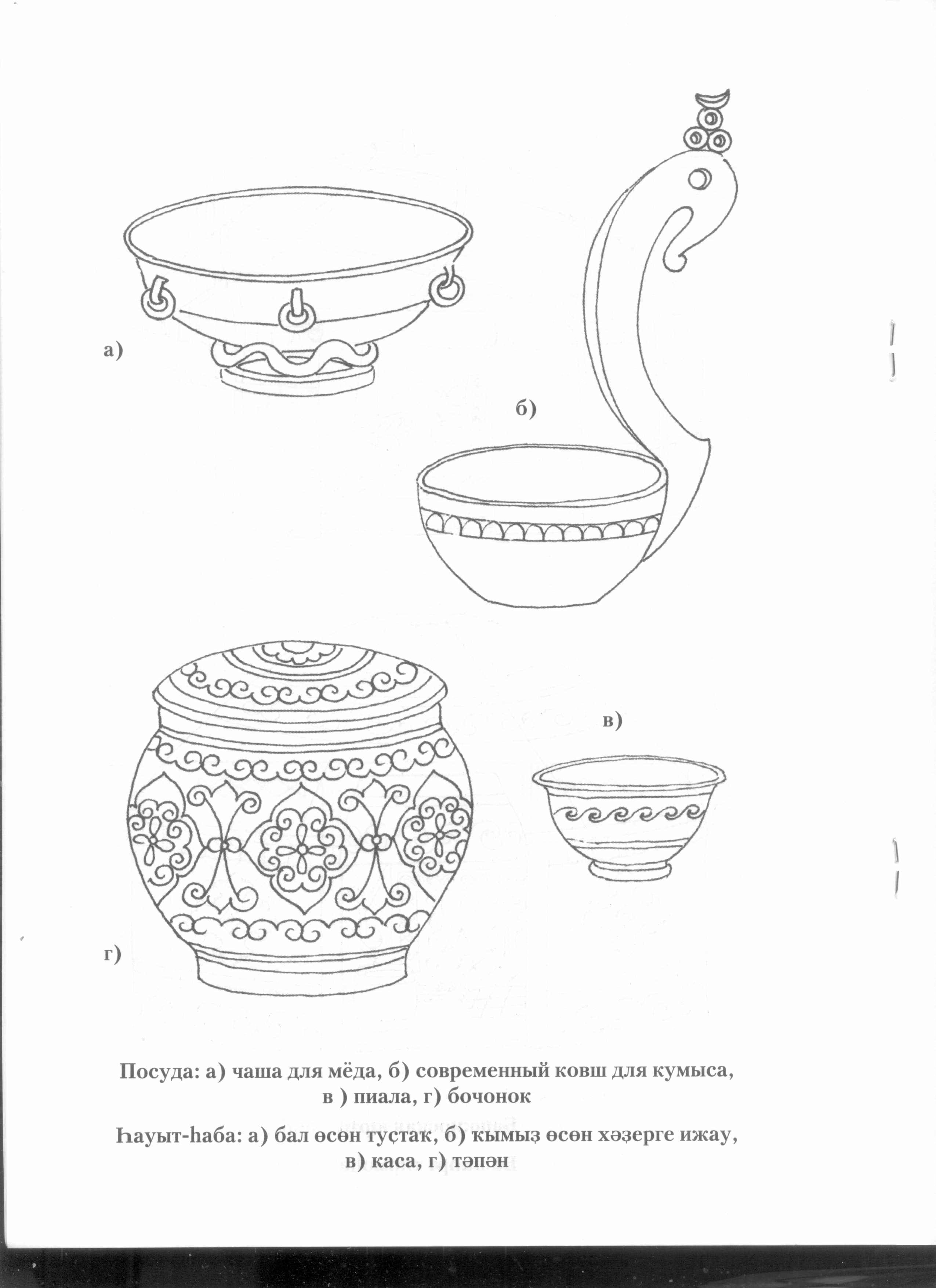Казахская посуда раскраска