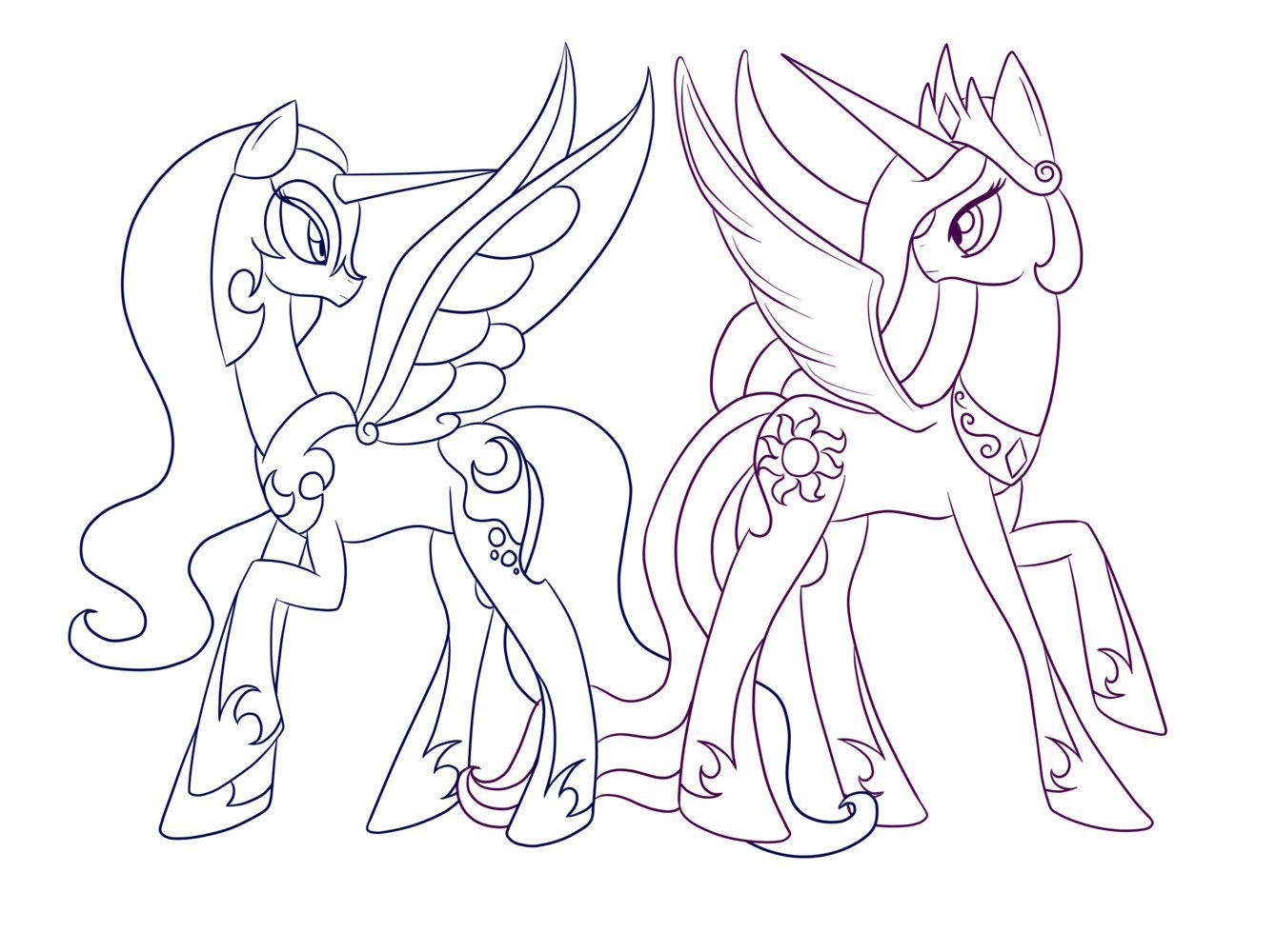 Принцесса Луна и принцесса Селестия раскраска