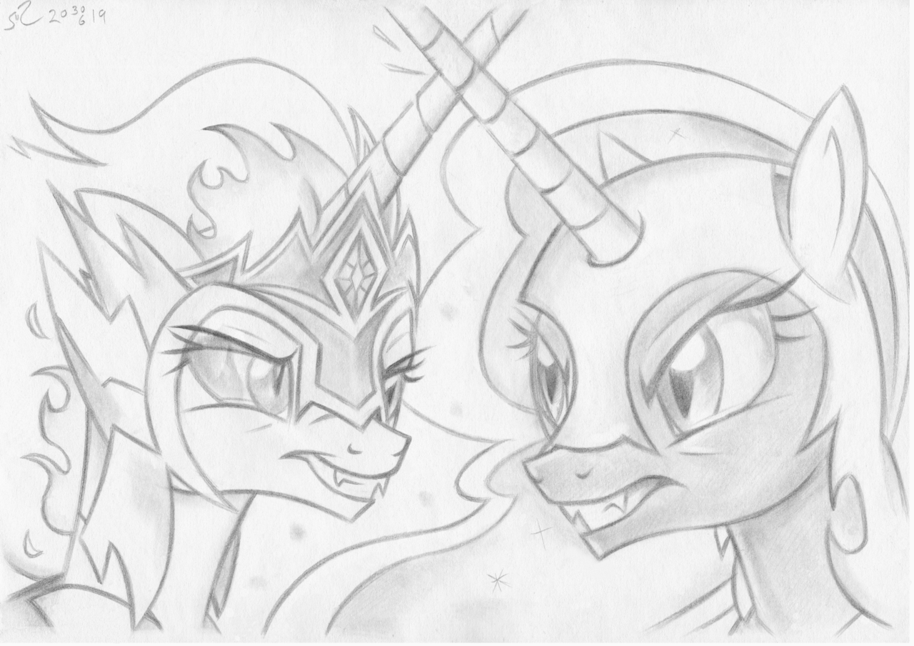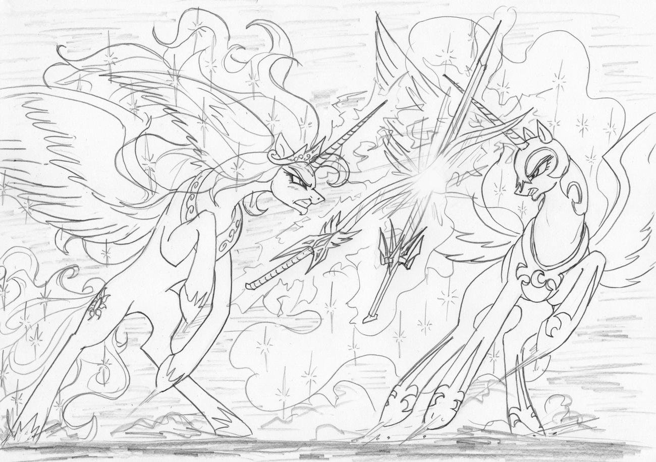 Раскраска пони Селестия и Луна злые
