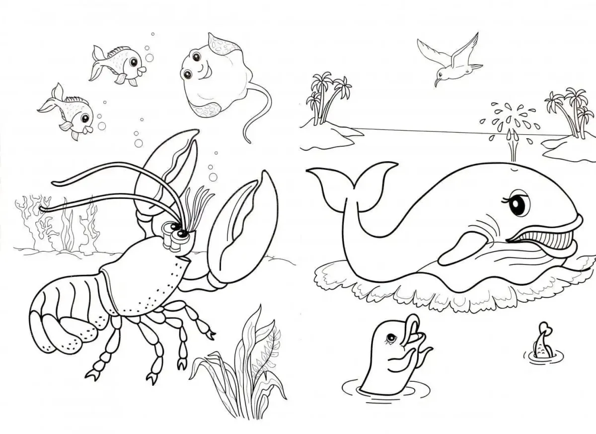 Подводные животные раскраски