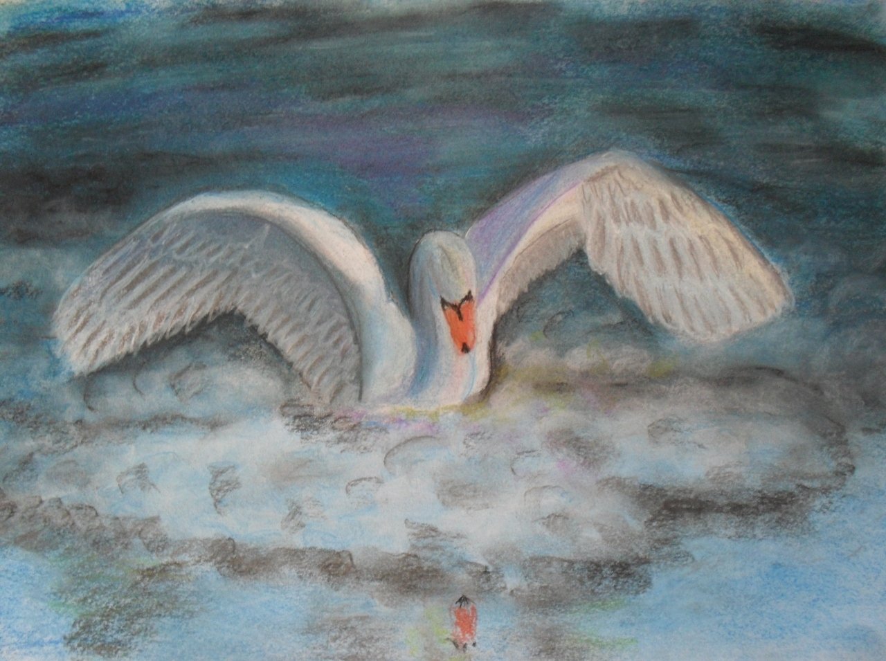 Лебеди пастелью