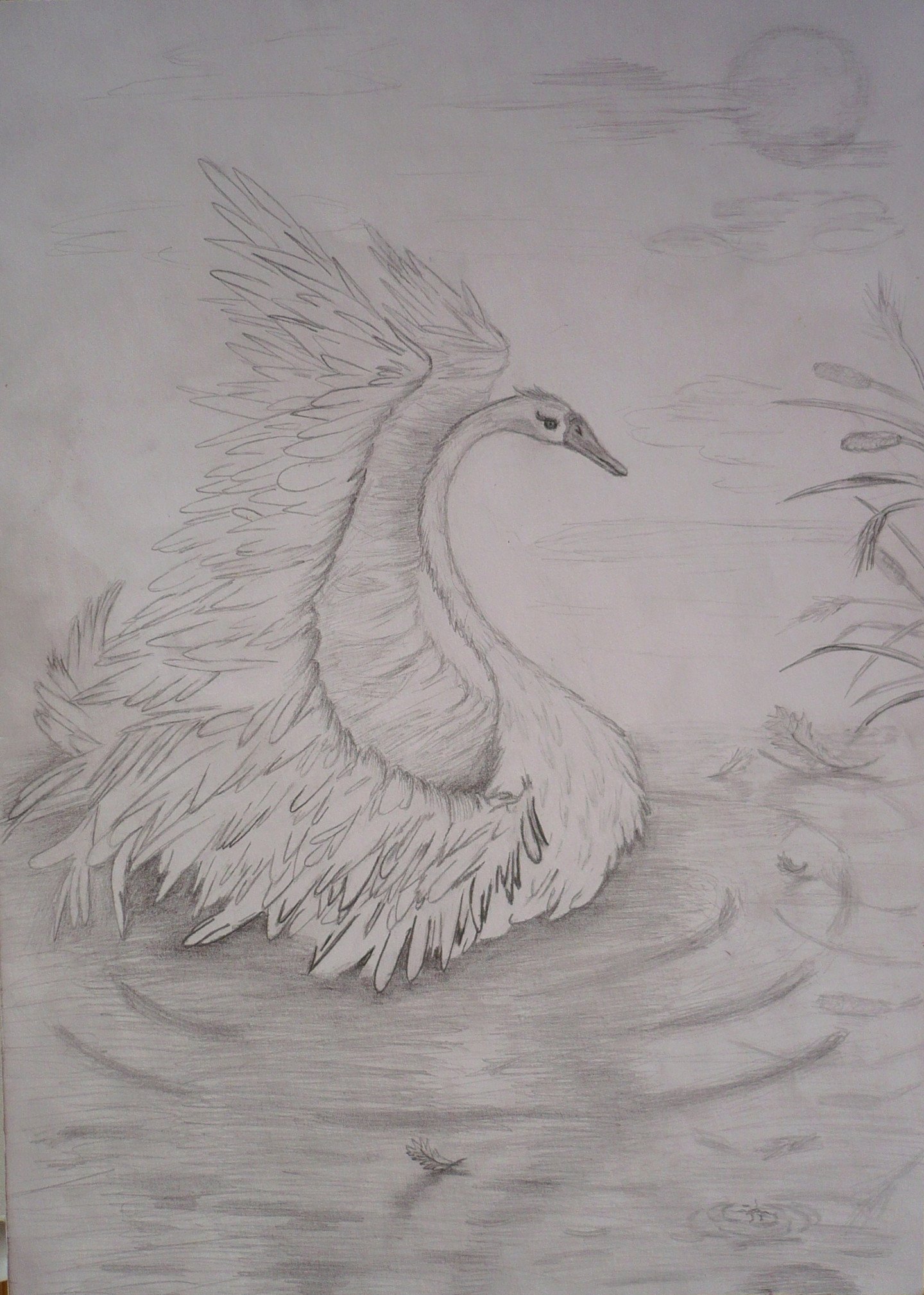 Лебедь карандашом