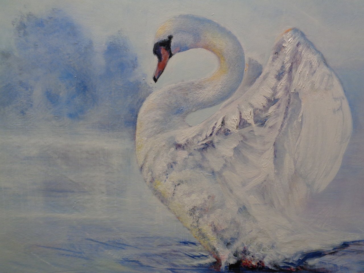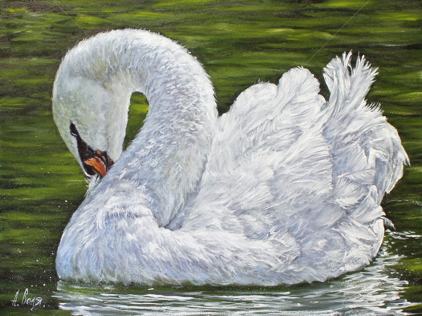 Рисование лебеди на озере