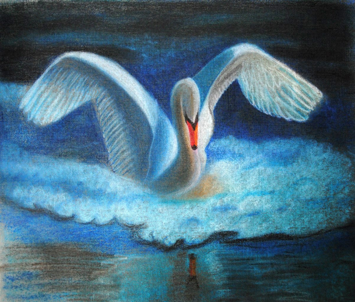 Рисование пастелью для детей лебедь