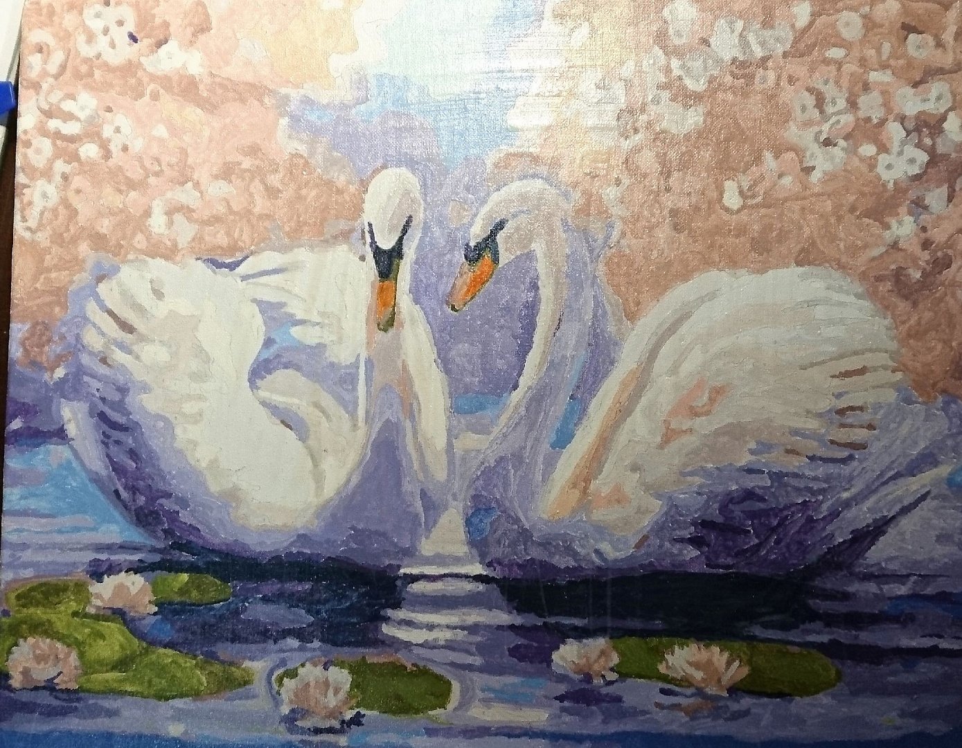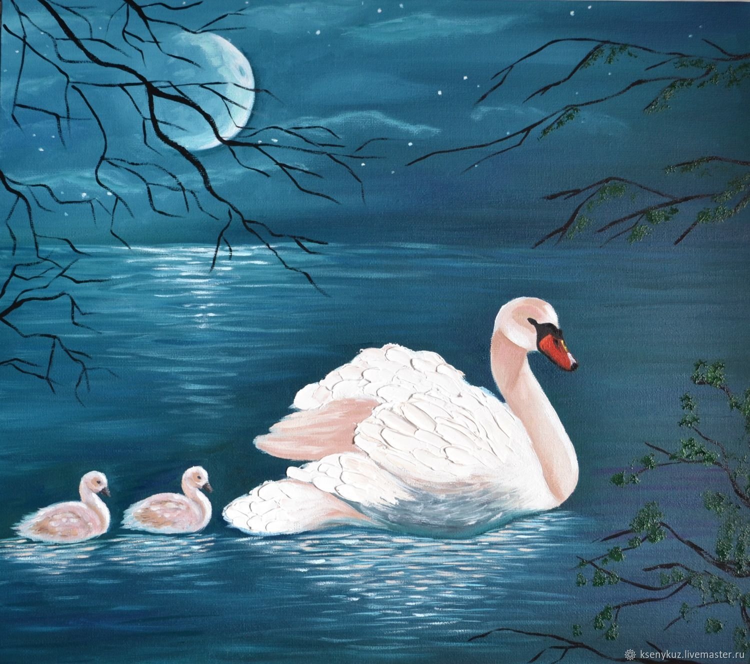 Картина маслом лебеди