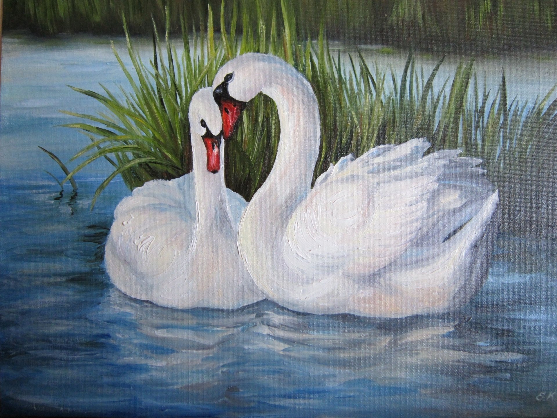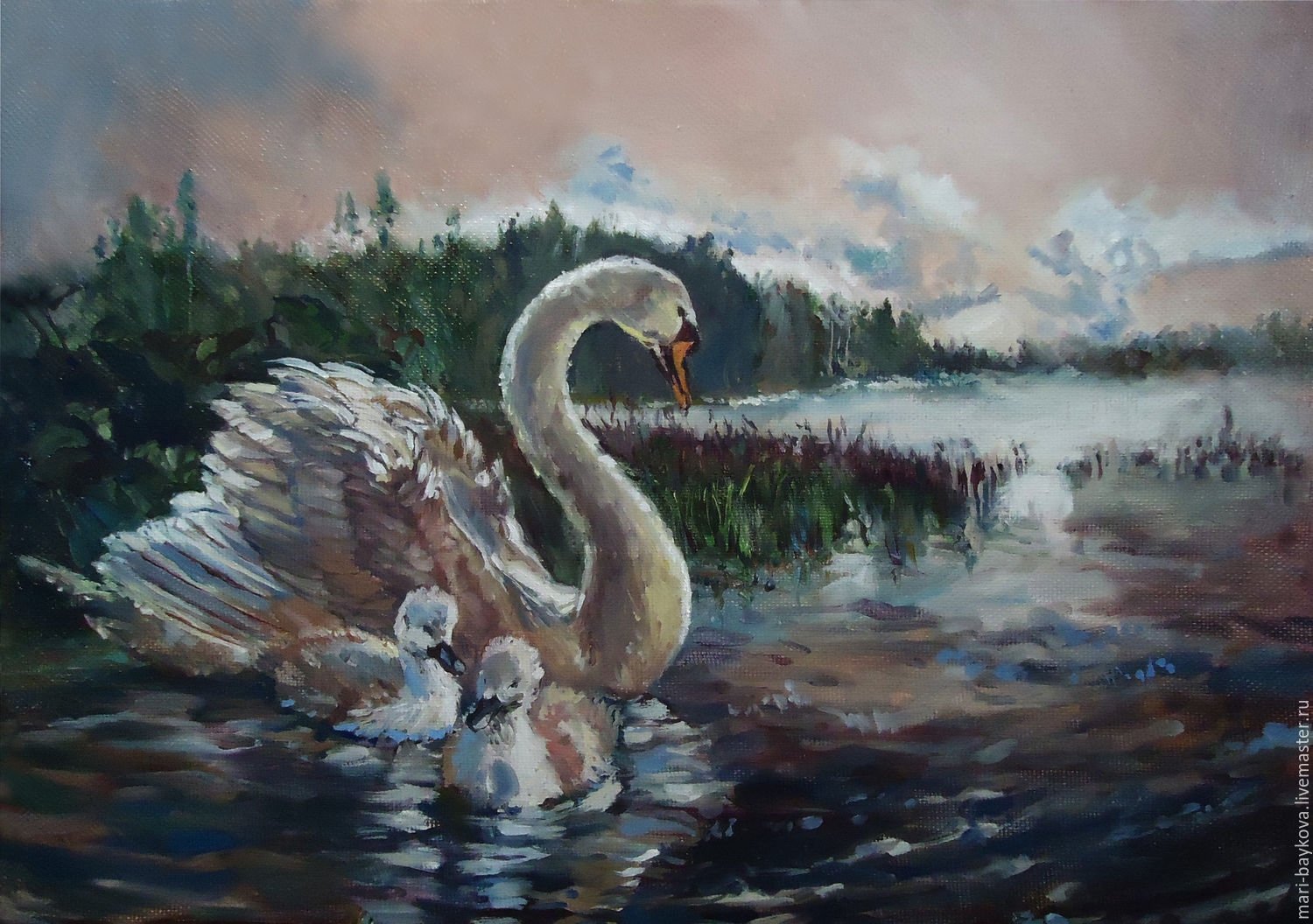 Лебеди маслом на холсте