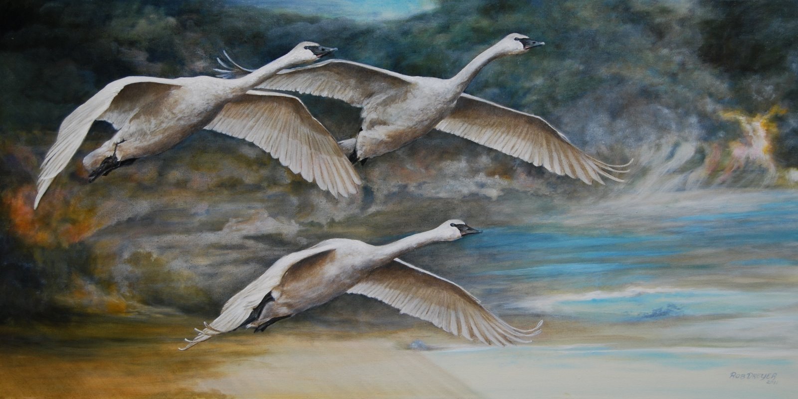 Картины пастель лебеди
