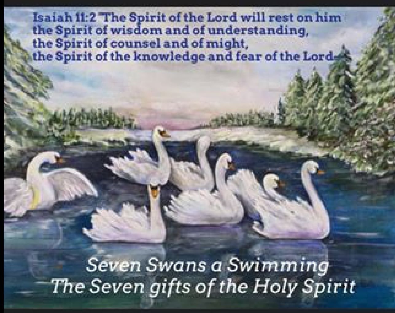 Канва с рисунком лебедь с лебедятами