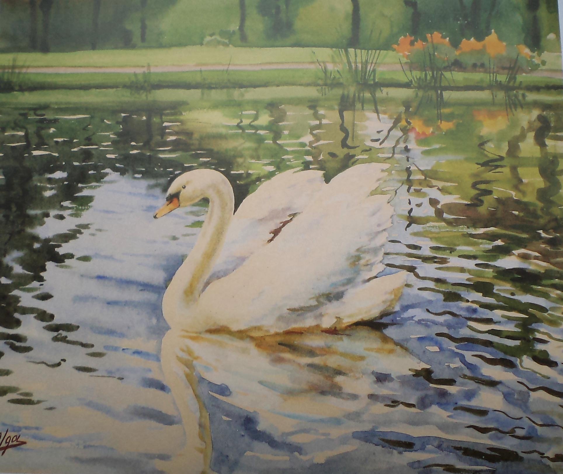 Акварельная лебедь