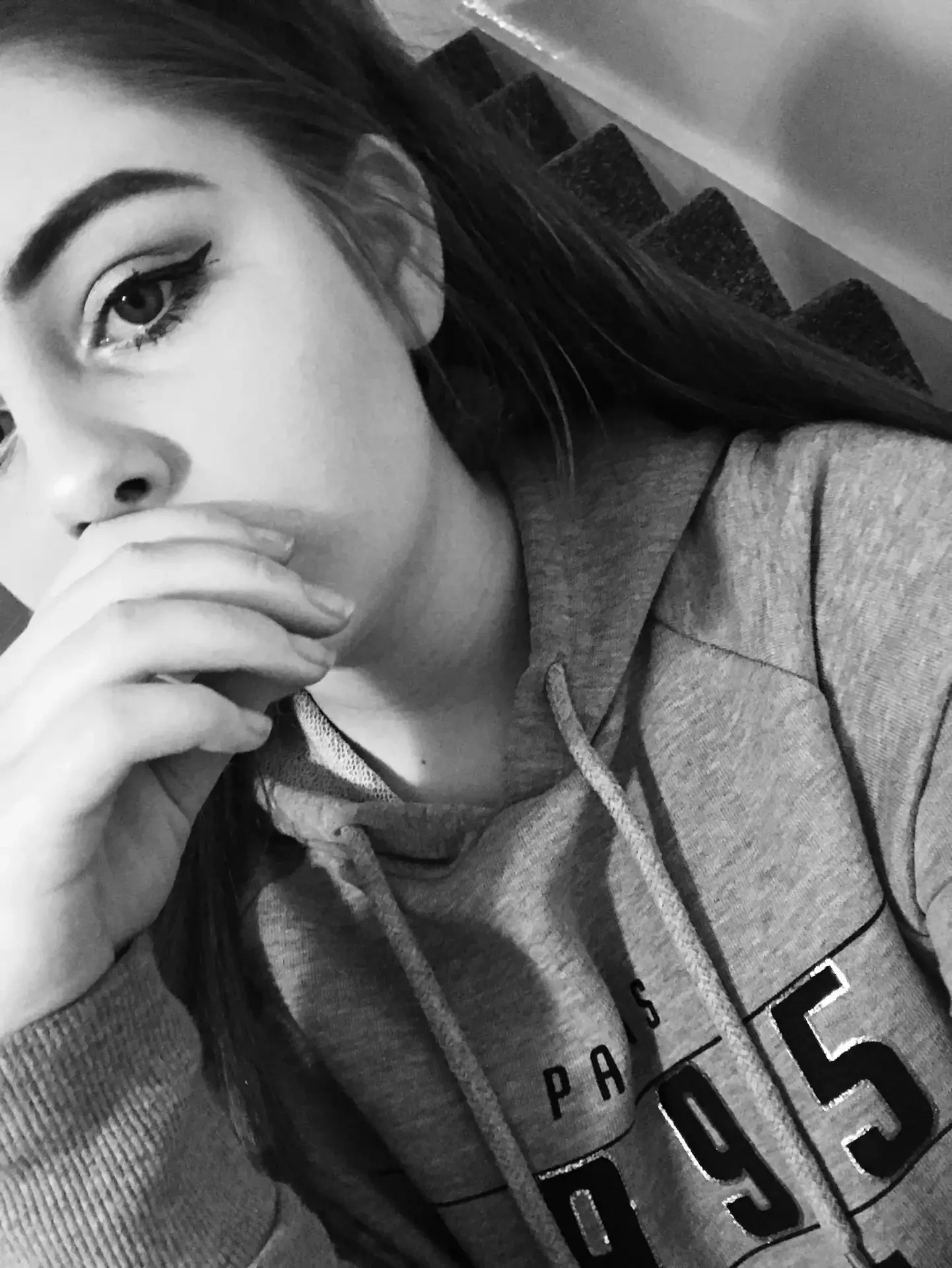 Девушка в толстовке селфи