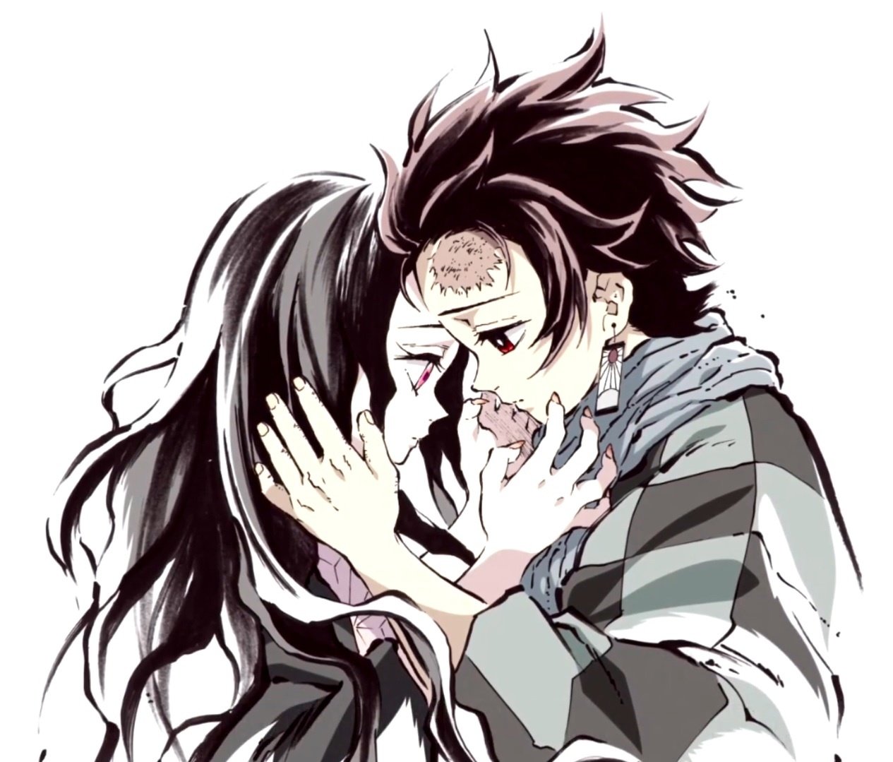 Незуко и Танджиро поцелуй