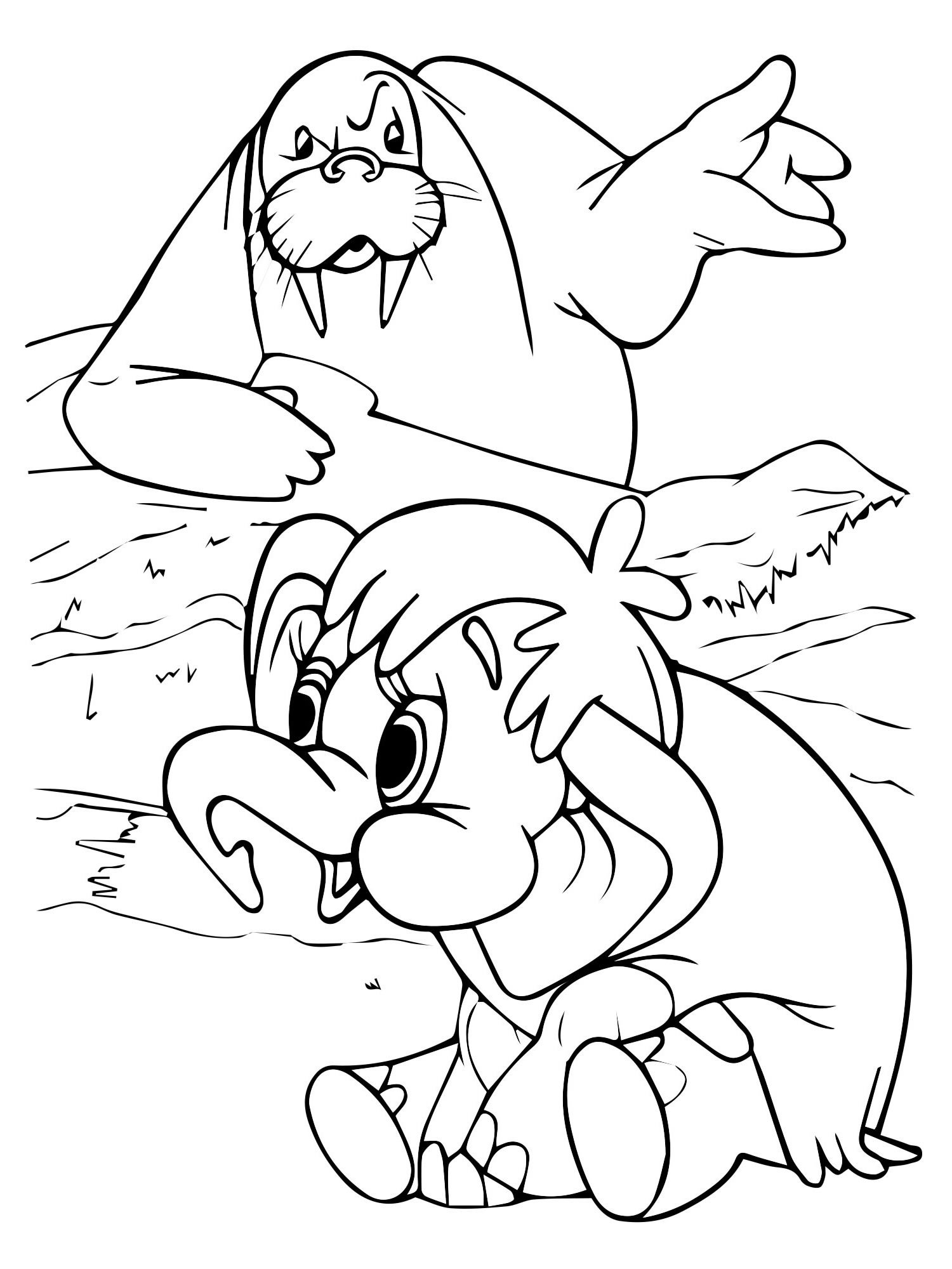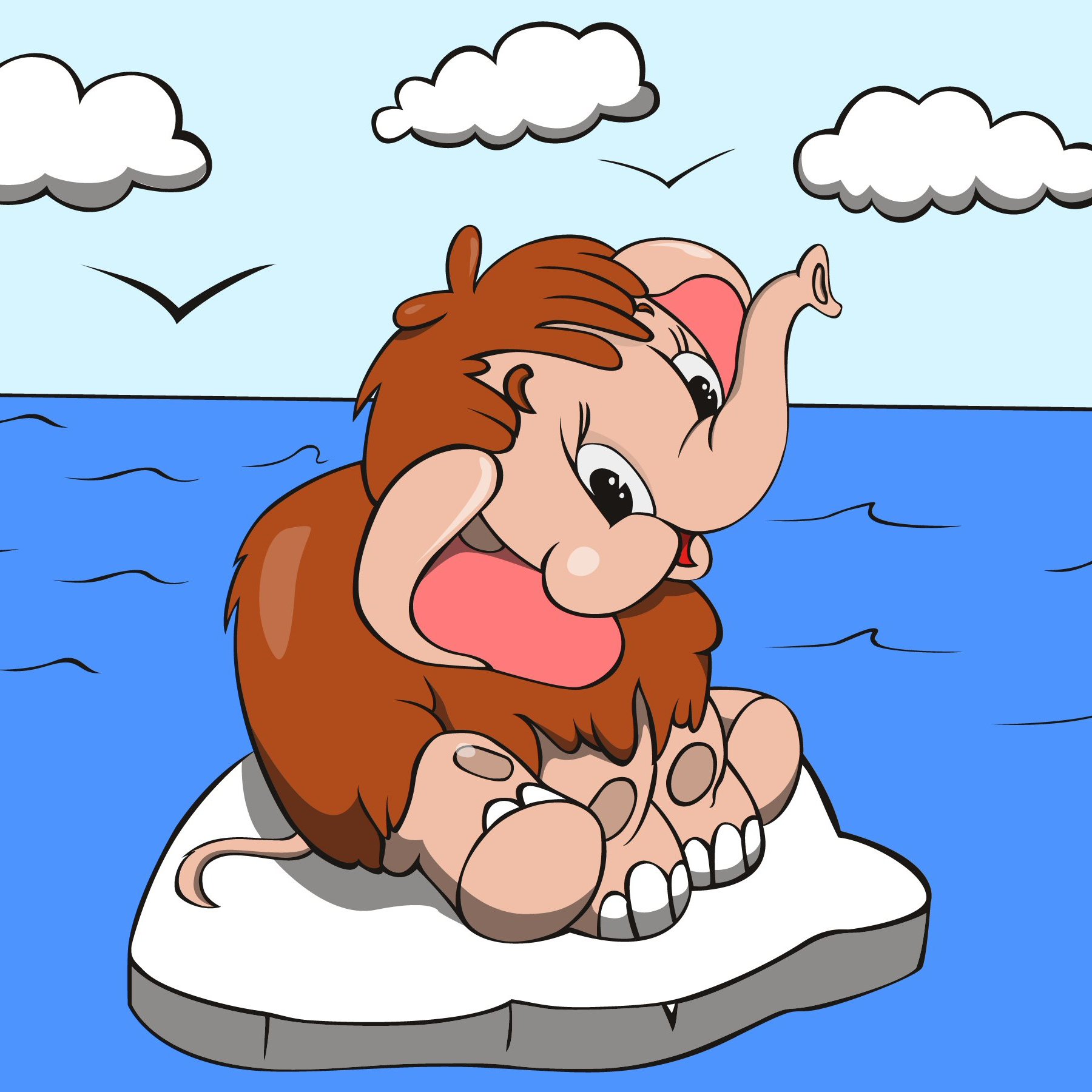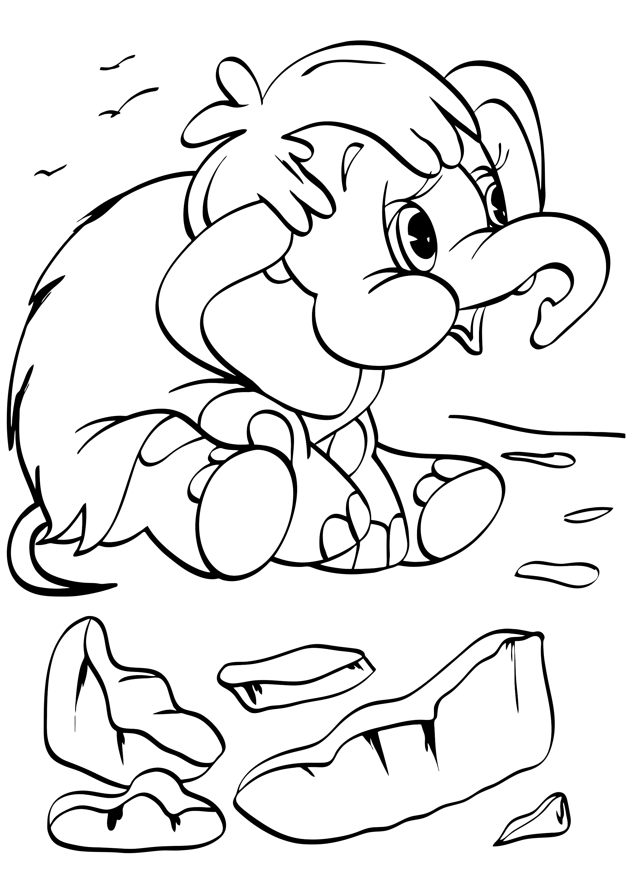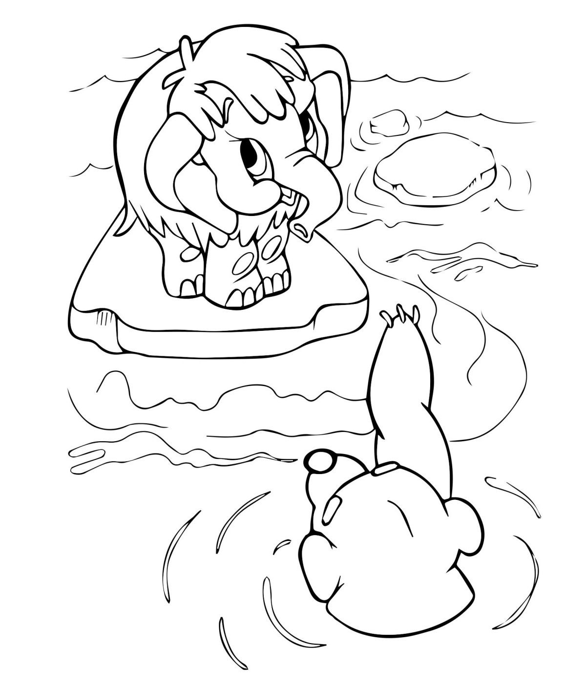 Раскраска Мамонтенок на льдине