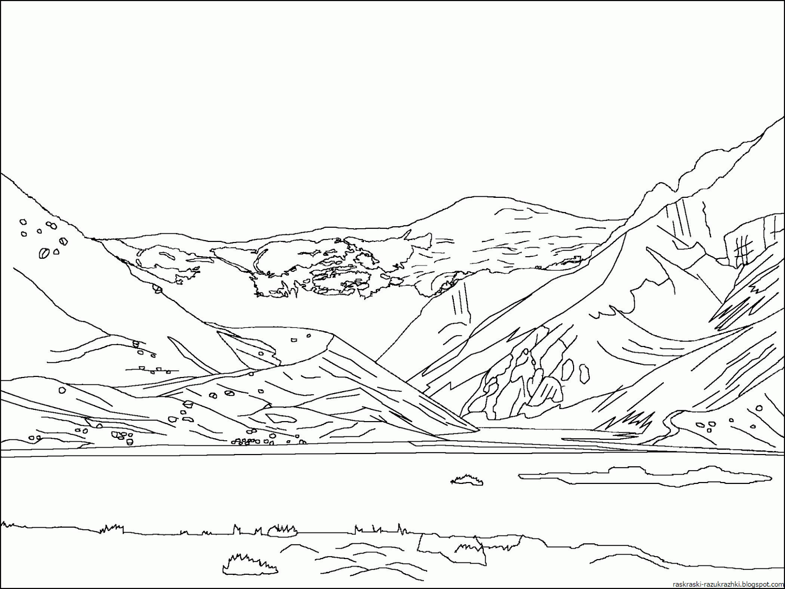 Горы и озеро раскраска