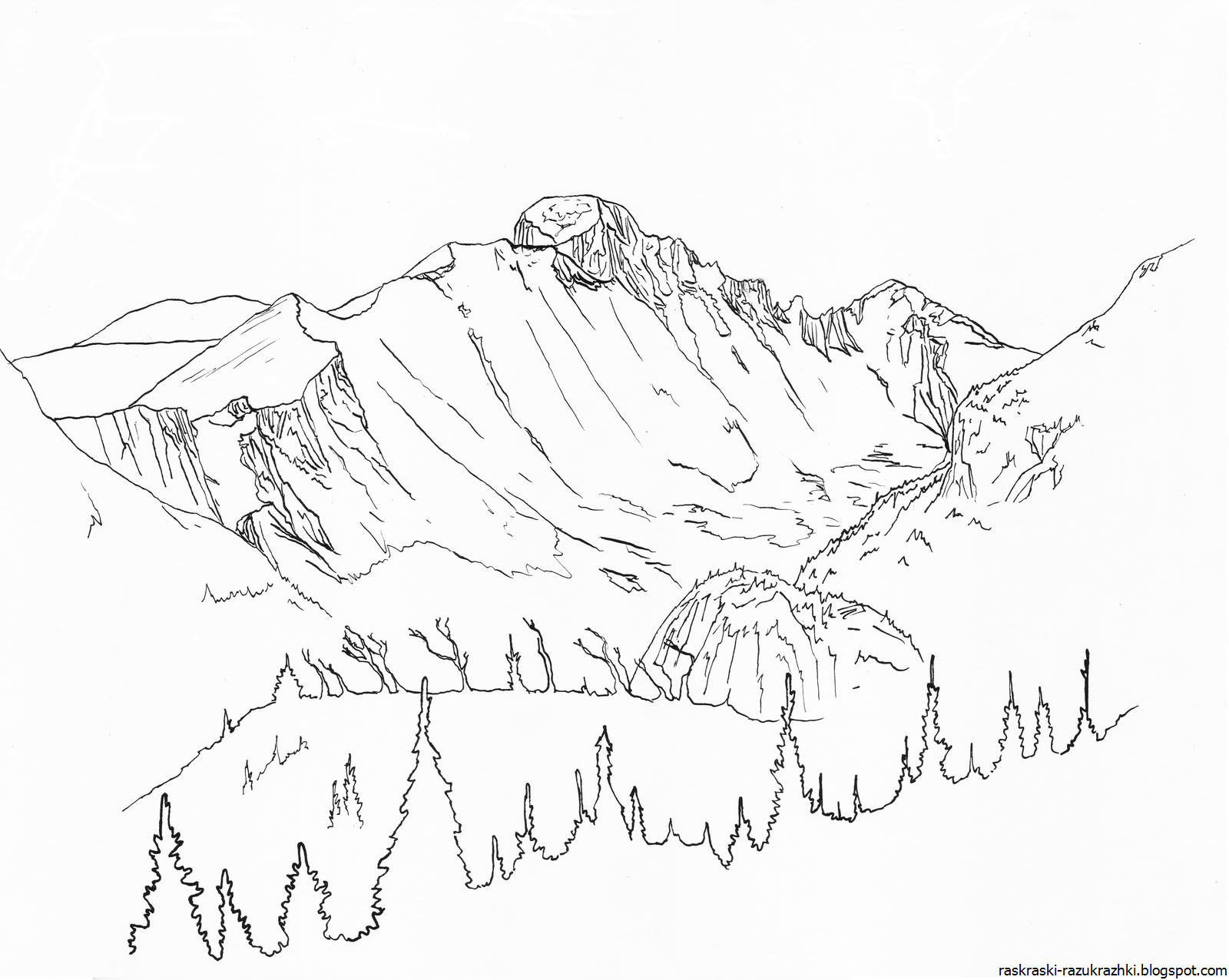 Горный пейзаж раскраска