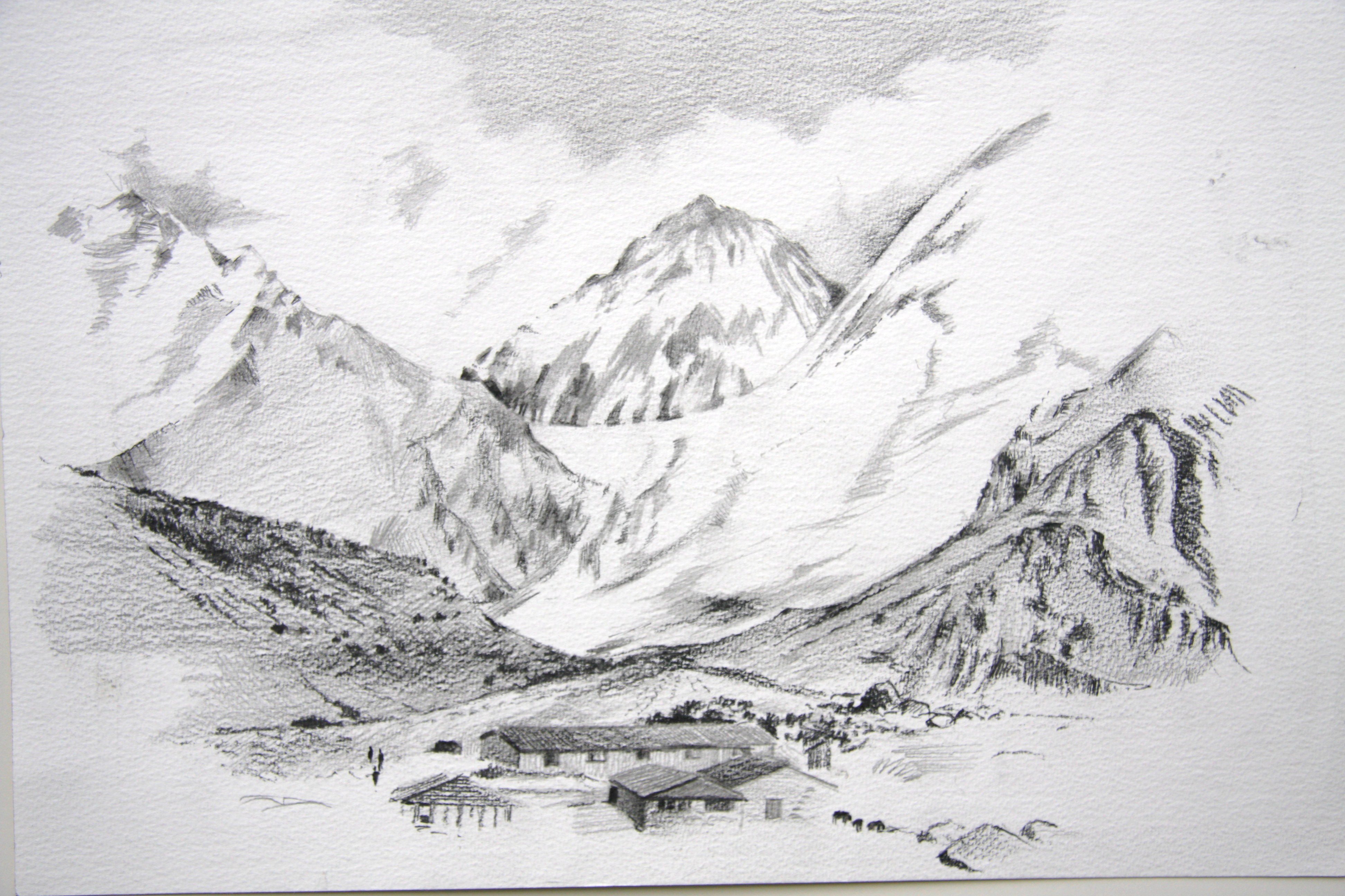 Горы Гималаи рисунок карандашом