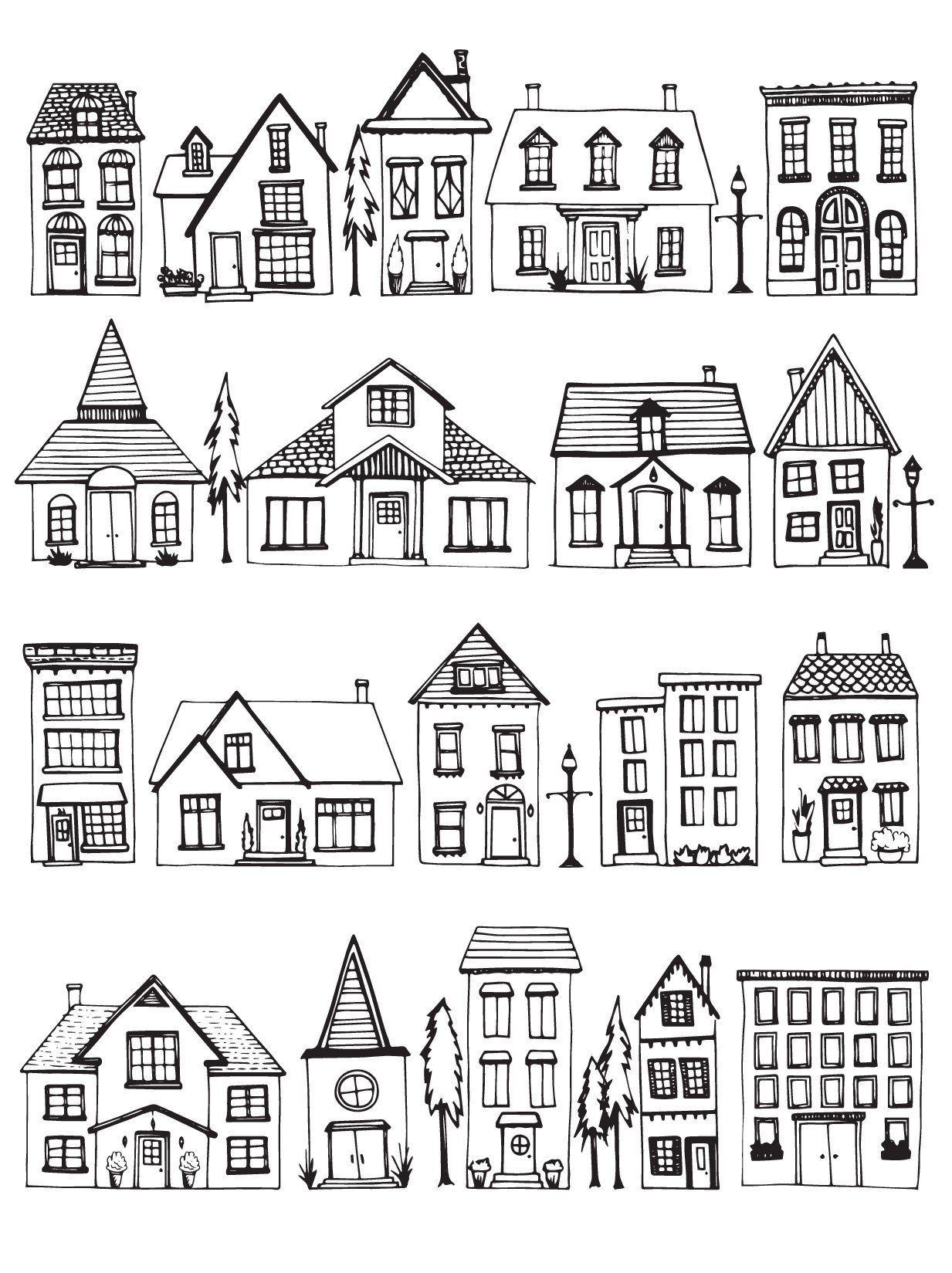 Раскраска. Домики