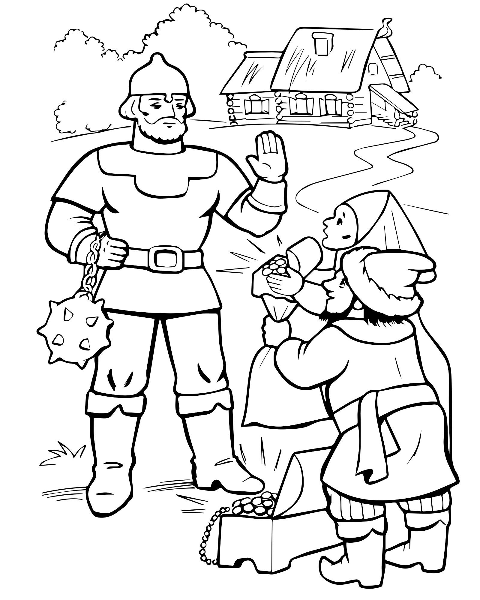 Былина Илья Муромец и Соловей разбойник раскраска