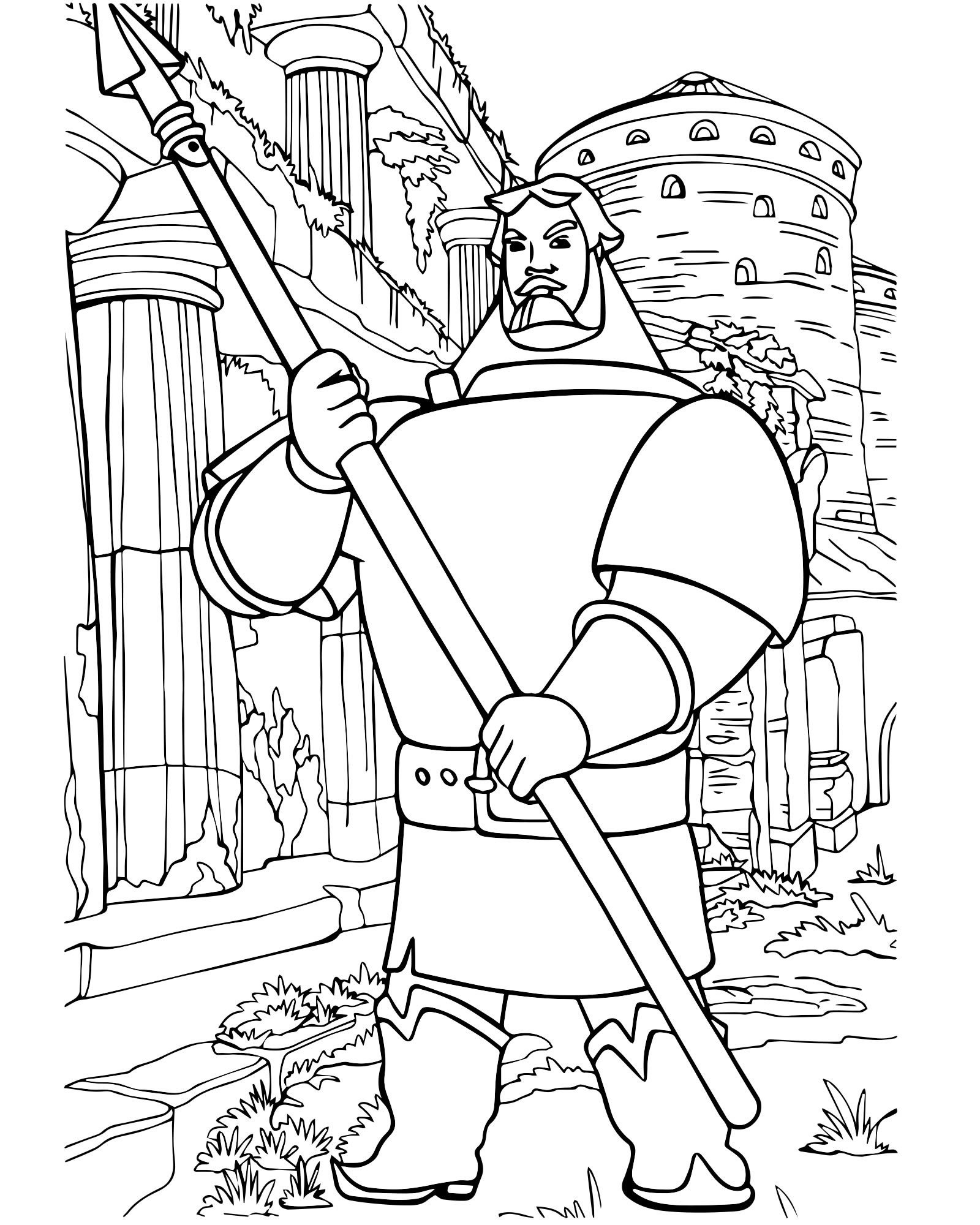 Богатырь раскраска для детей