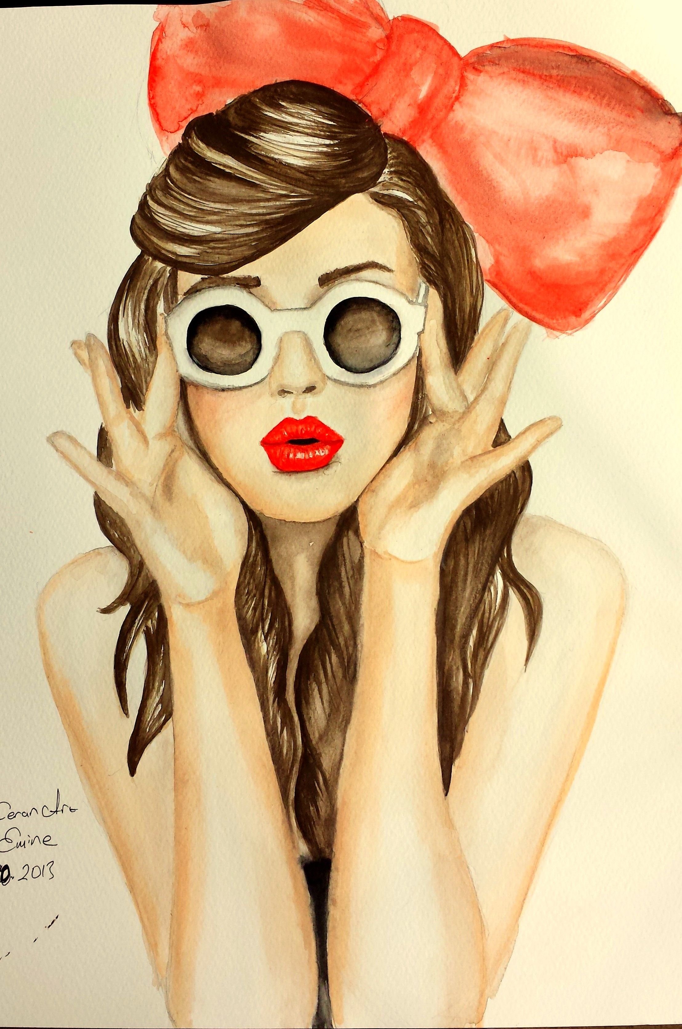 Нарисованная девушка в очках