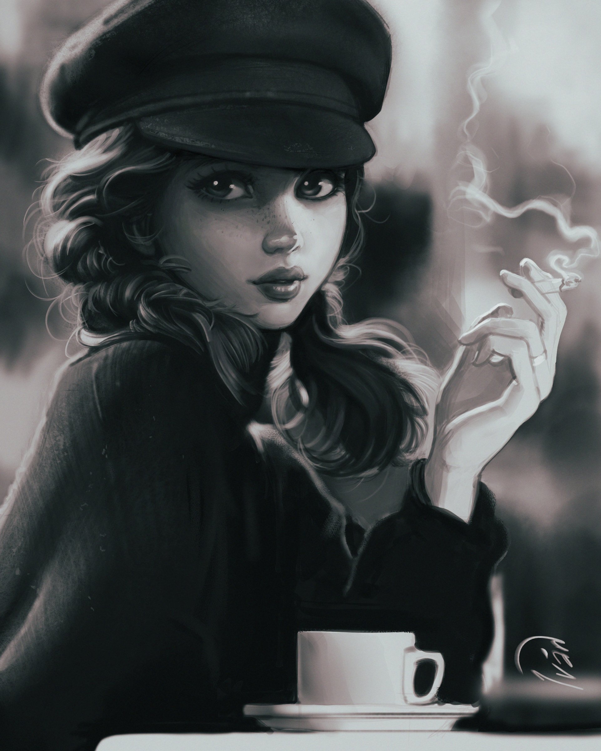 Девушка с кофе арт