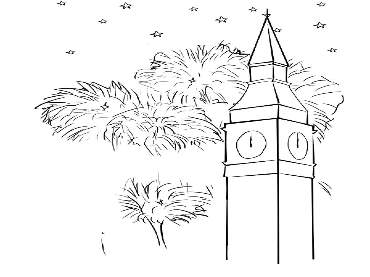 Салют рисунок для детей раскраска