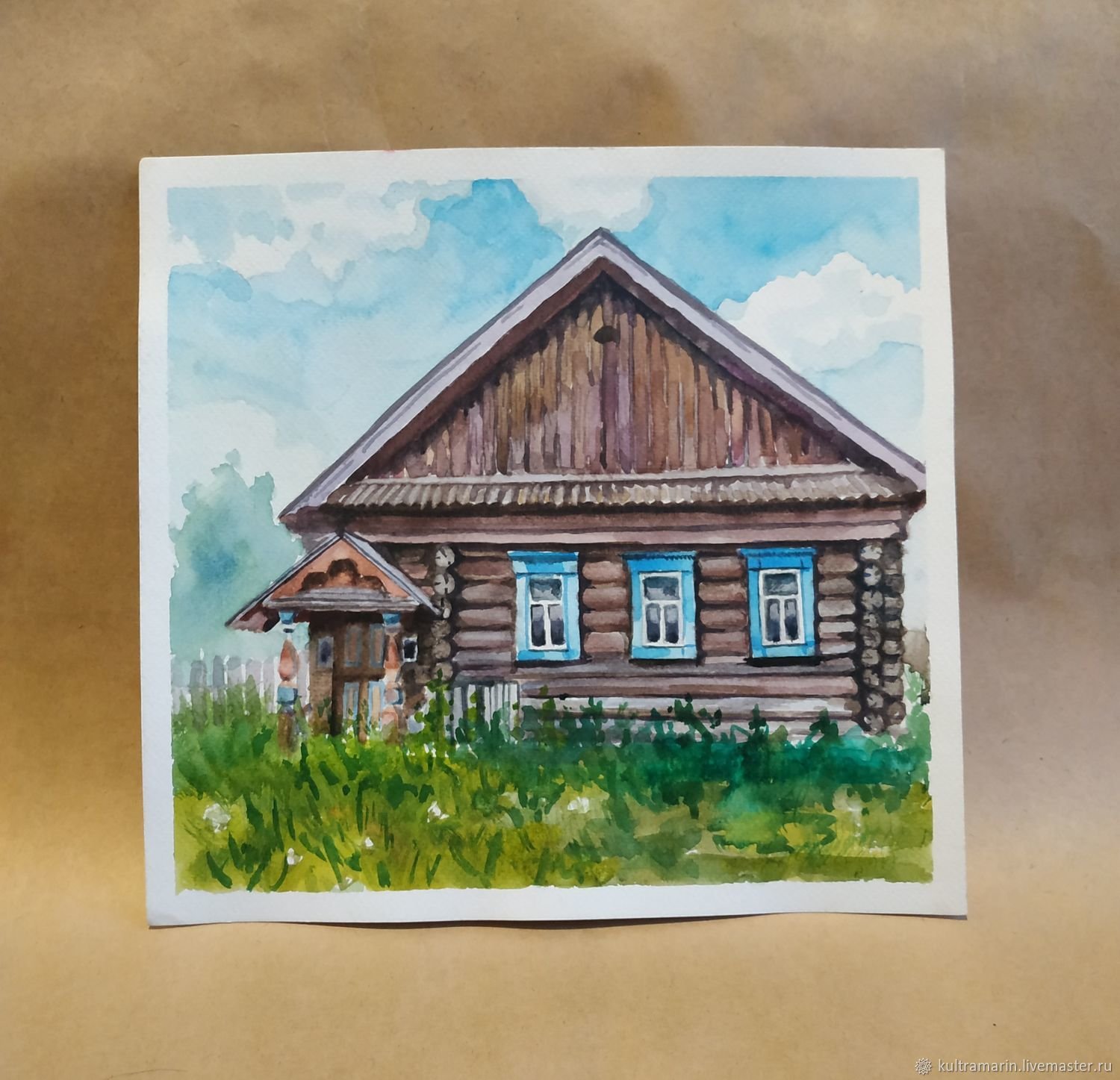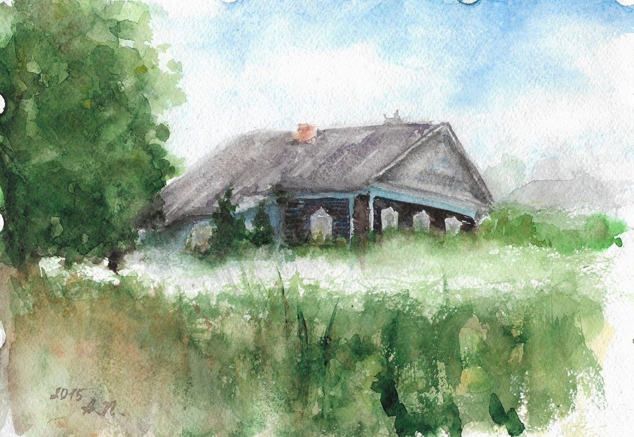 Деревенский домик акварелью