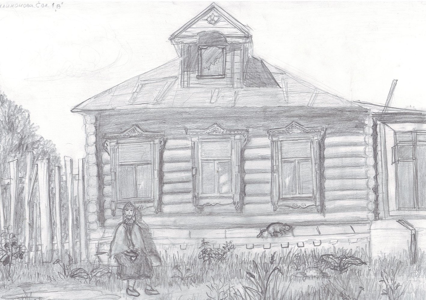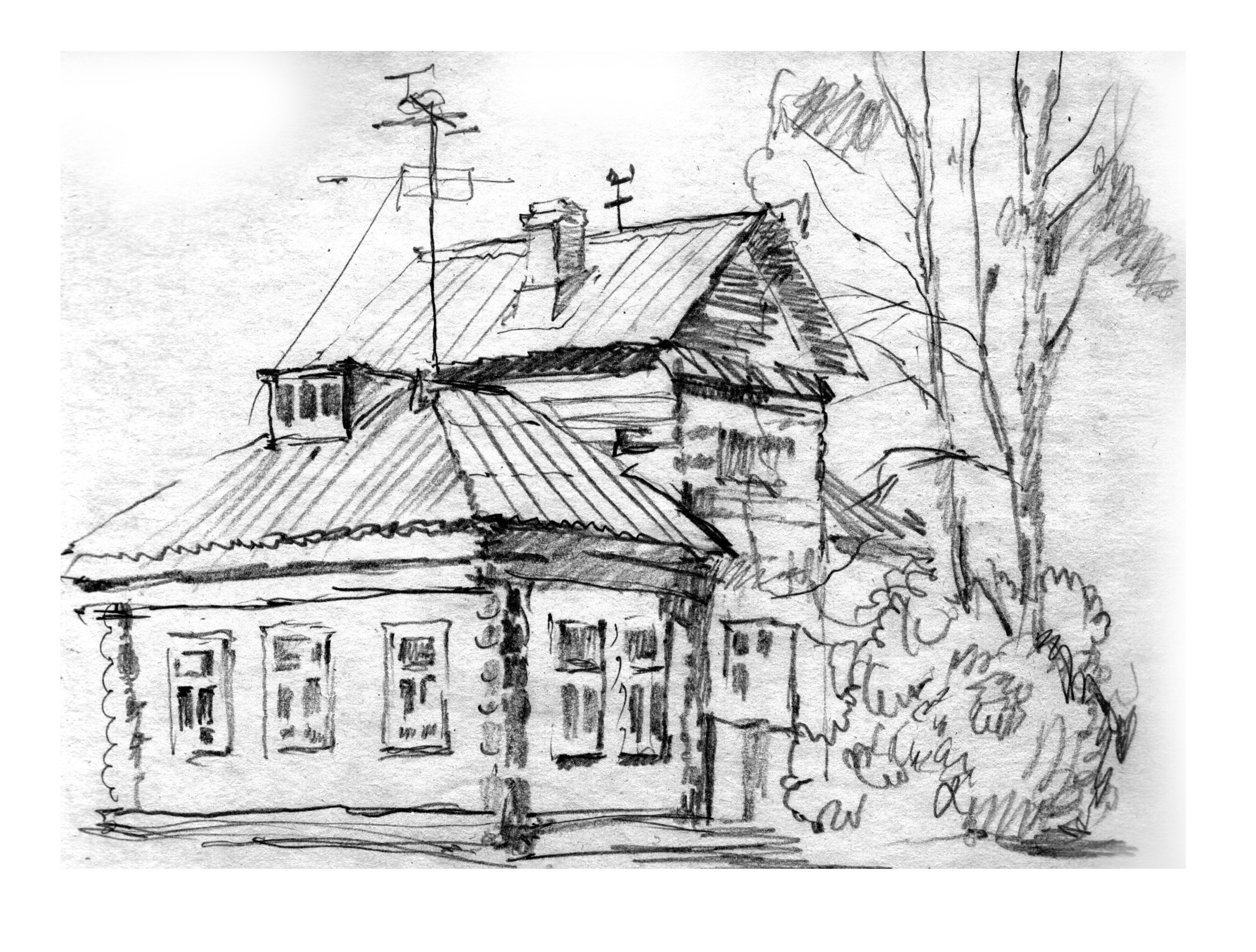 Деревенский домик карандашом