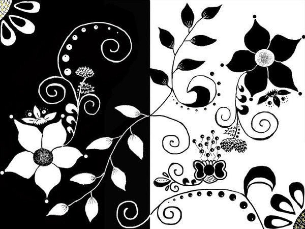 Растительный орнамент черно белый