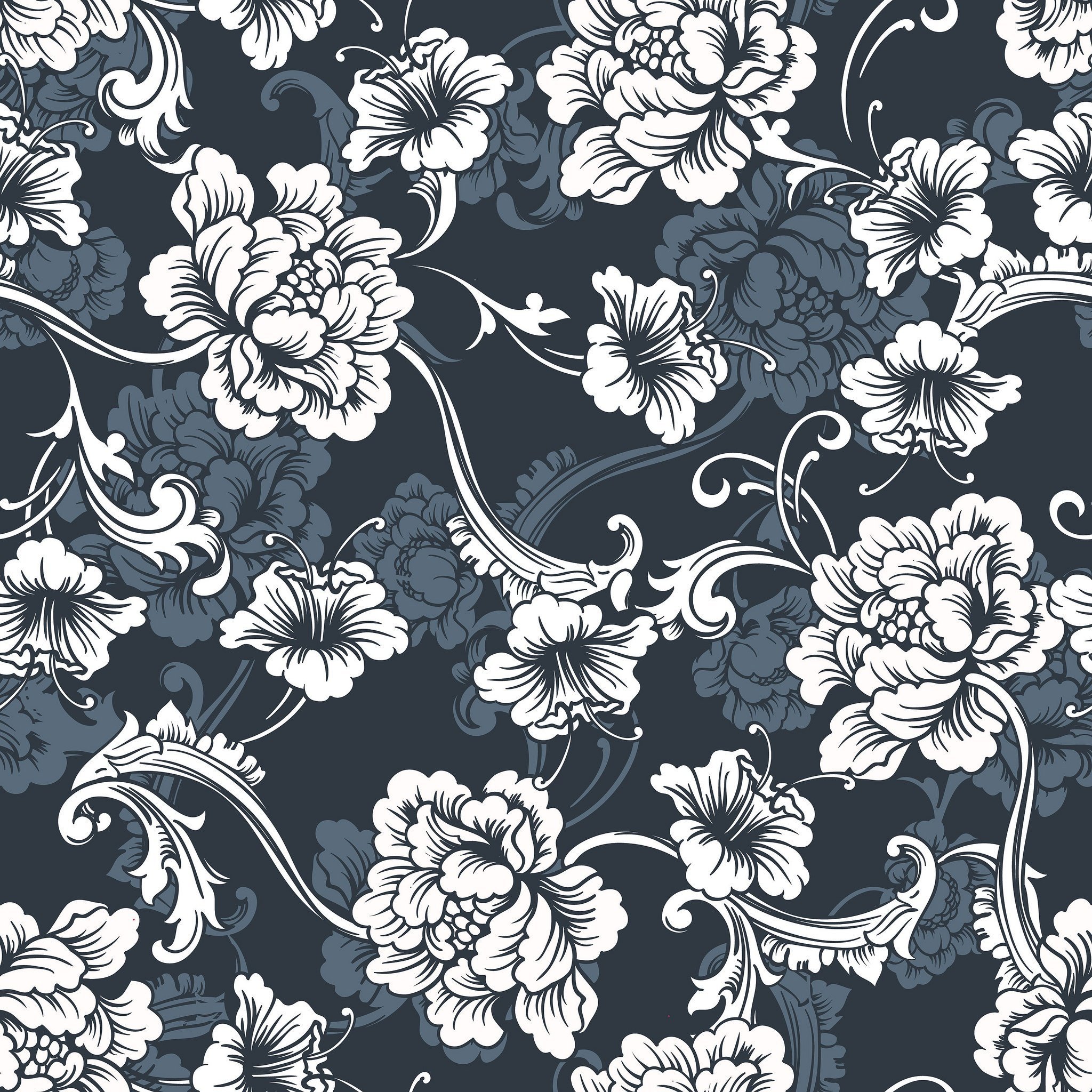 Цветочный орнамент на черном фоне
