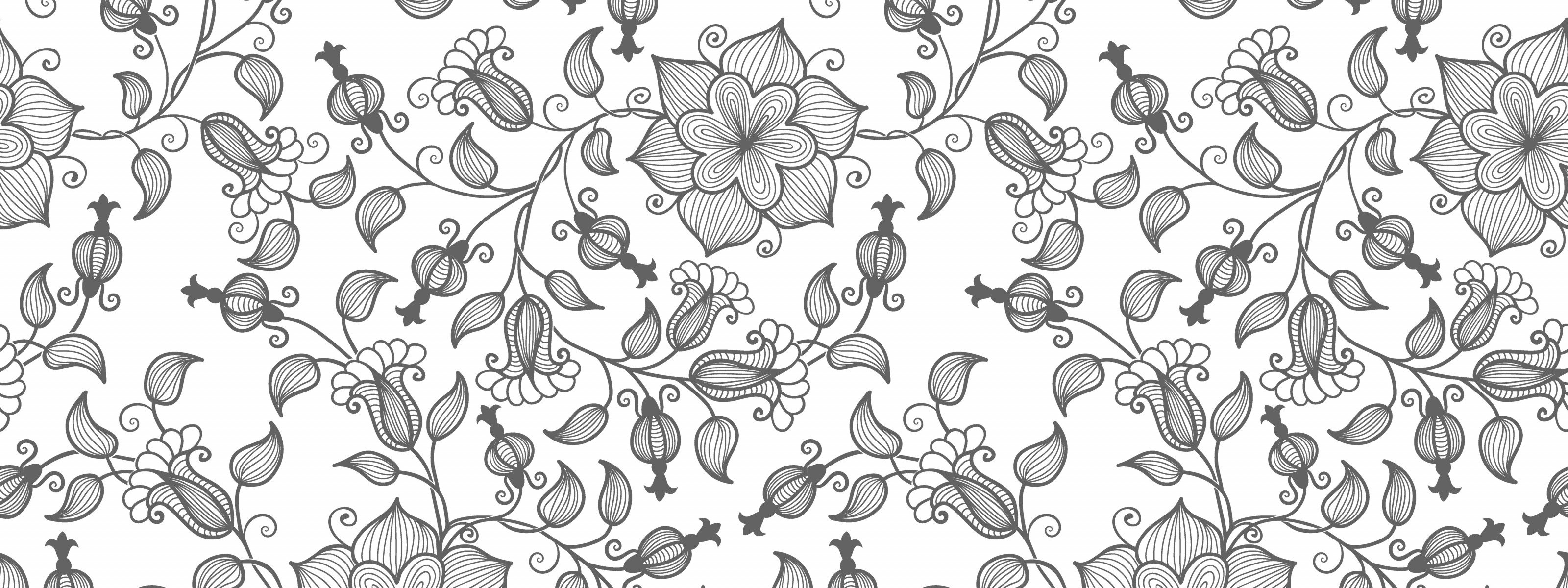 Цветочный орнамент в полосе черно белый