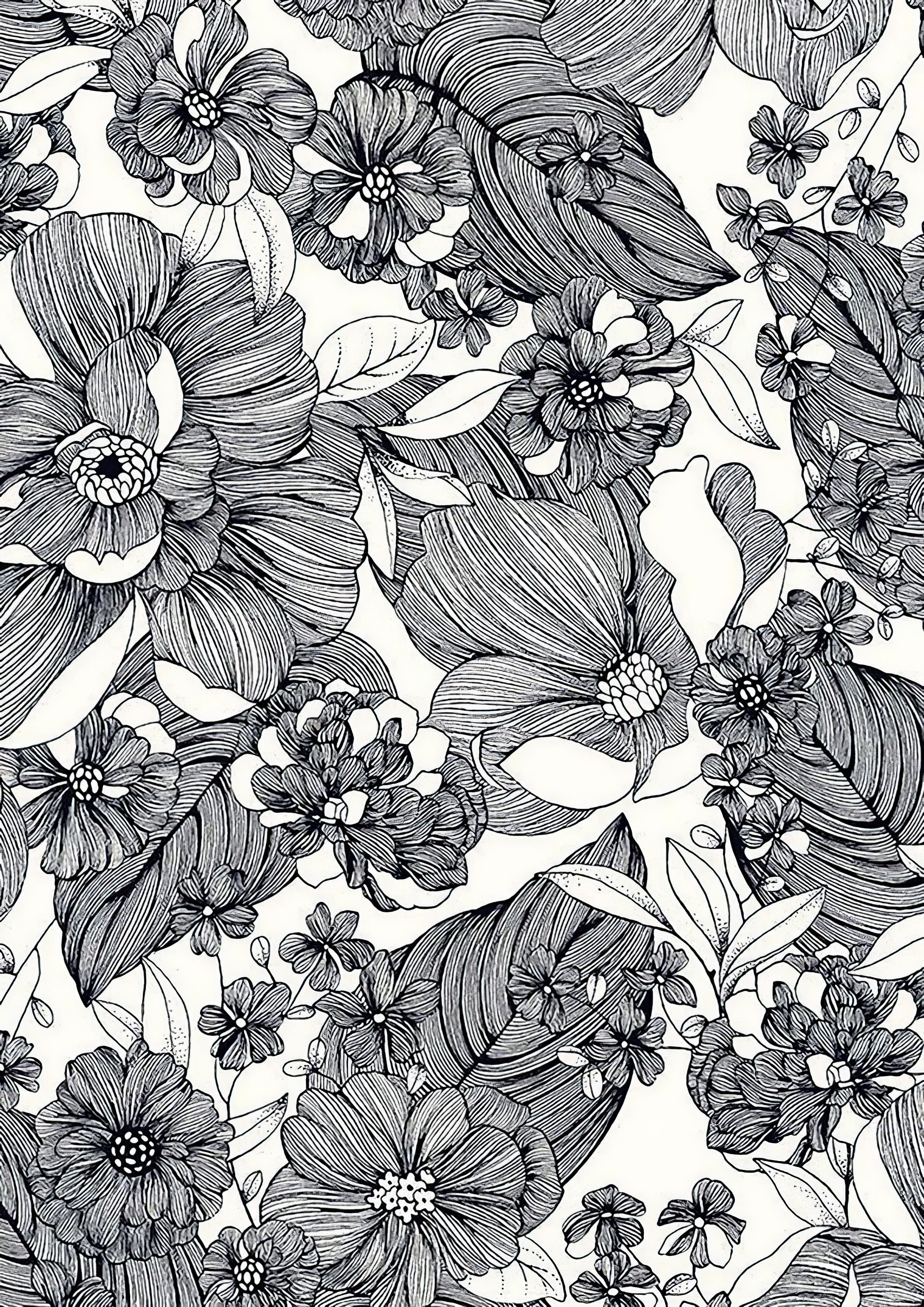 Цветочный узор чб