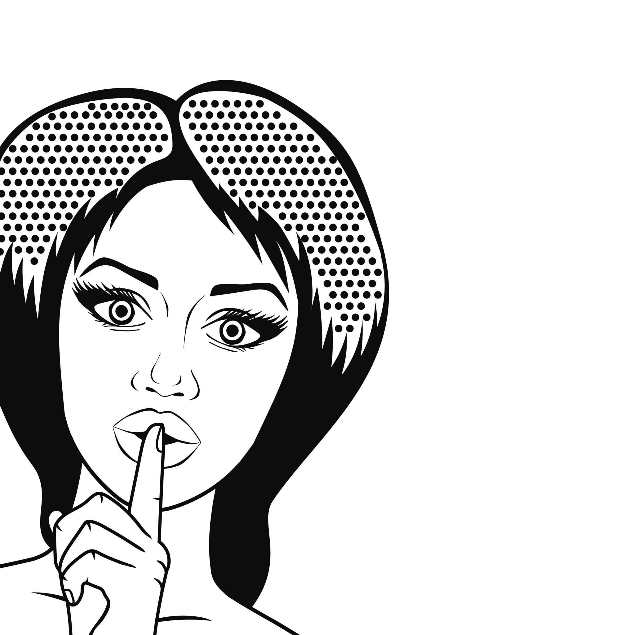 Нарисованная девушка показывает тихо
