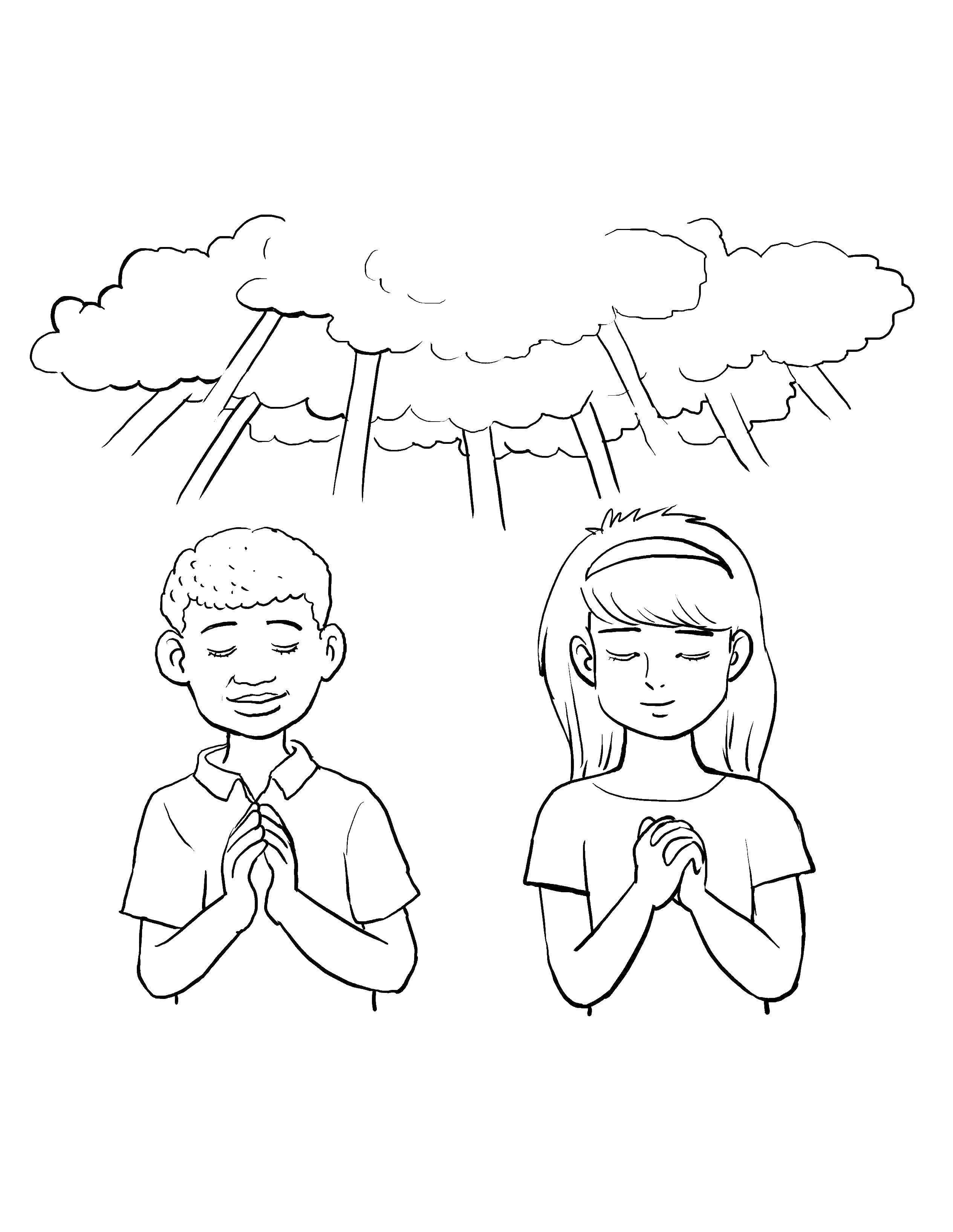Дети молятся раскраска