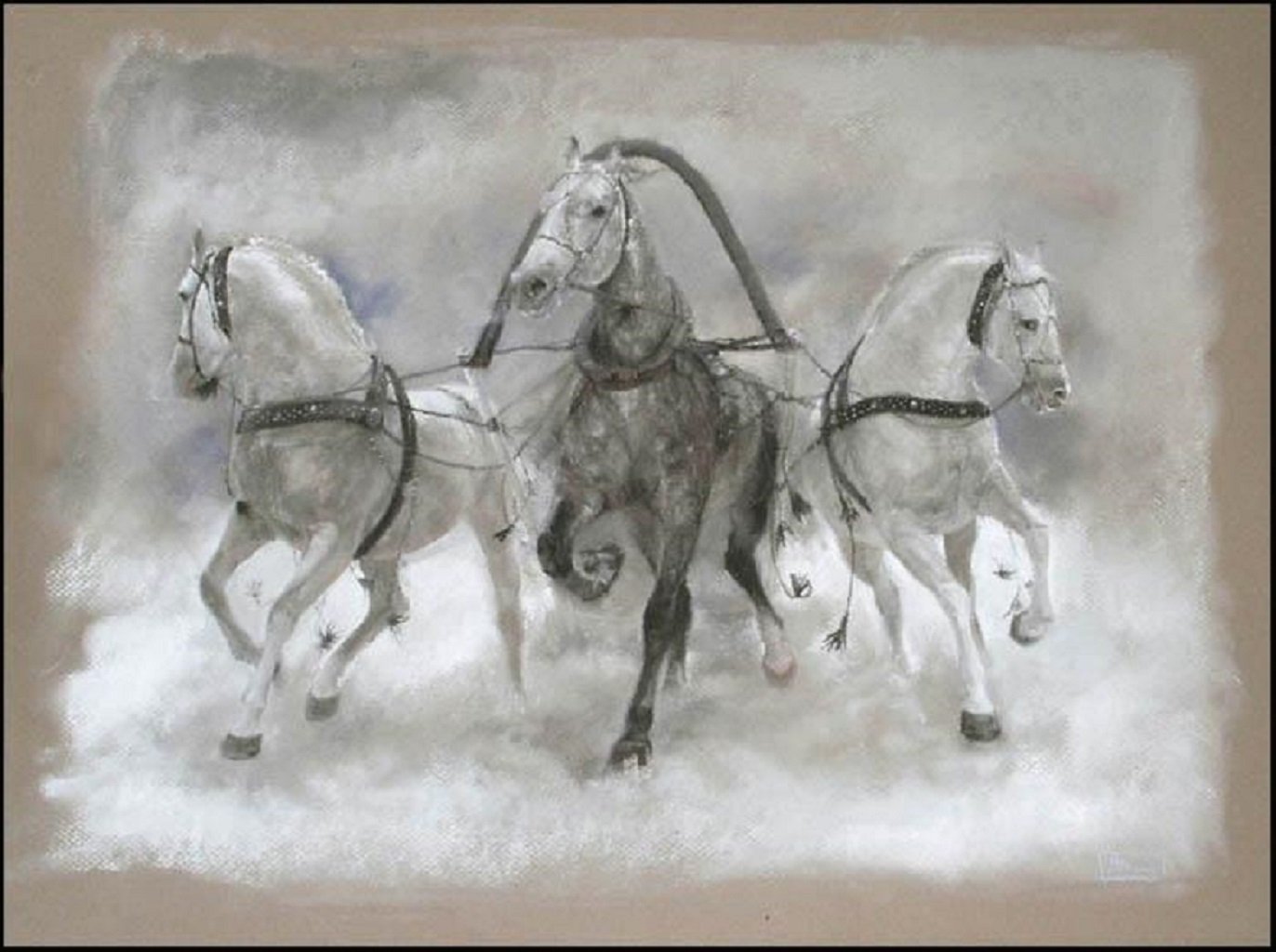 Тройка лошадей рисунок карандашом