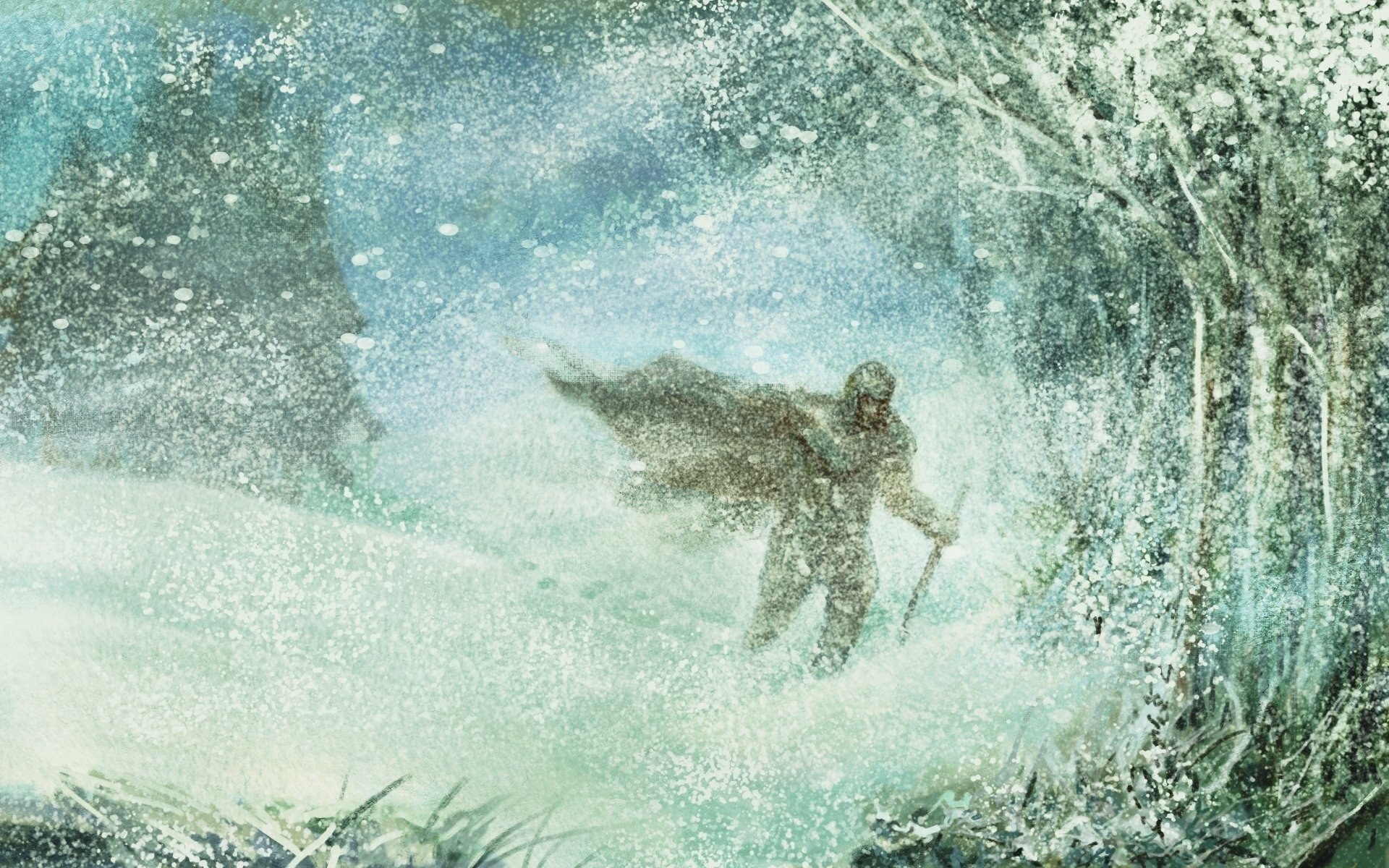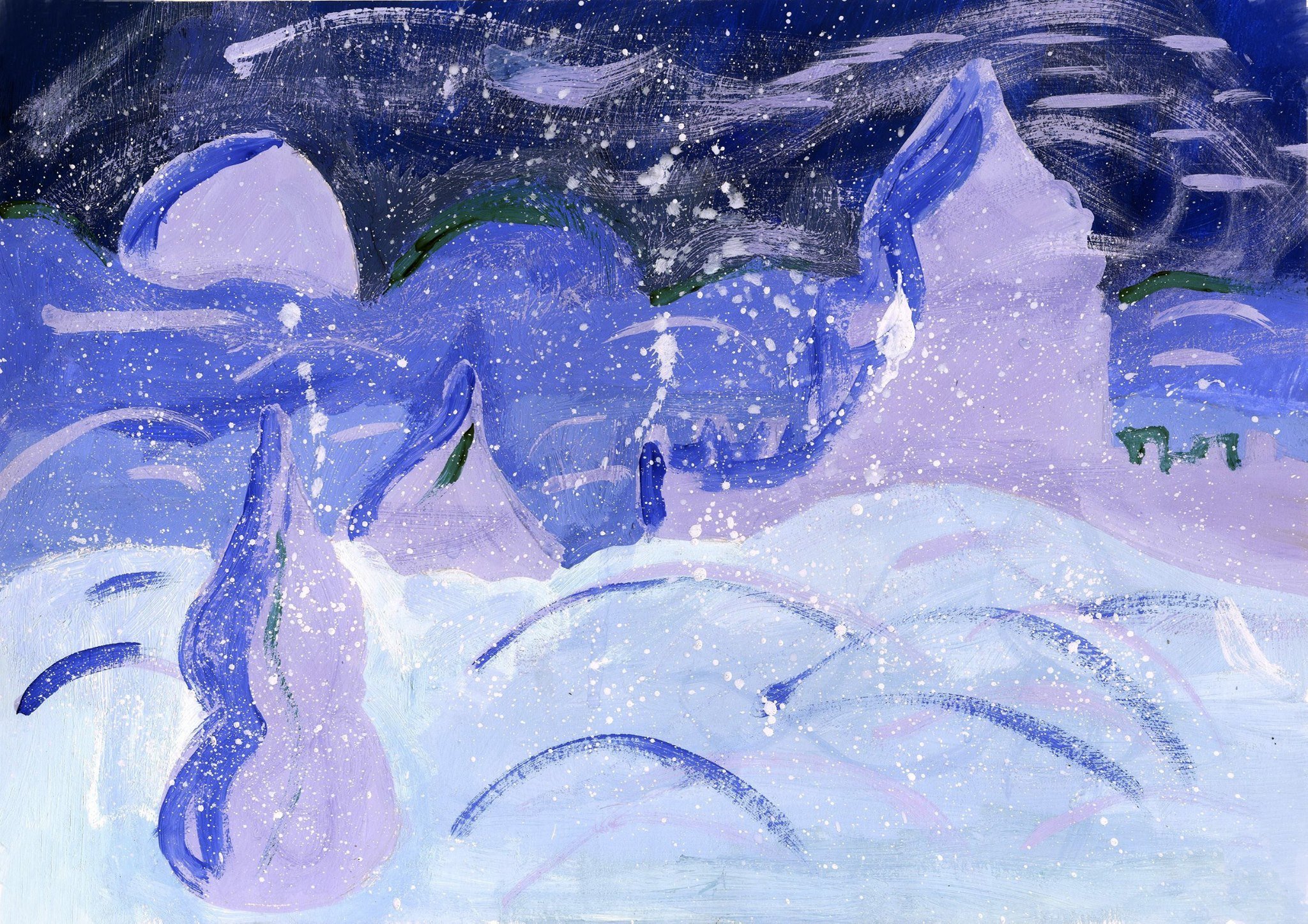 Снежная буря акварель