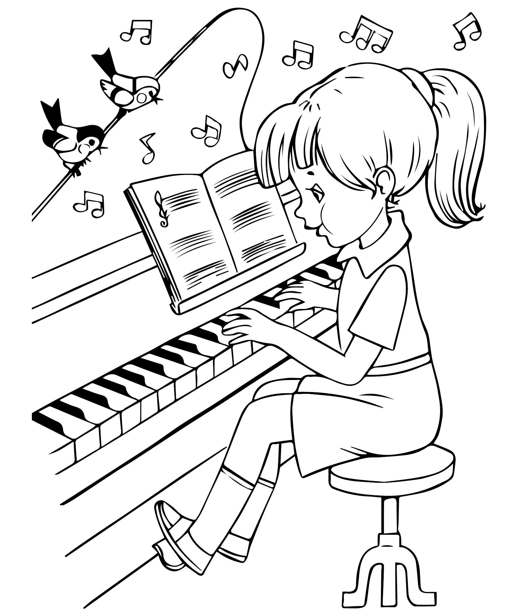 Раскраска пианистка девочка