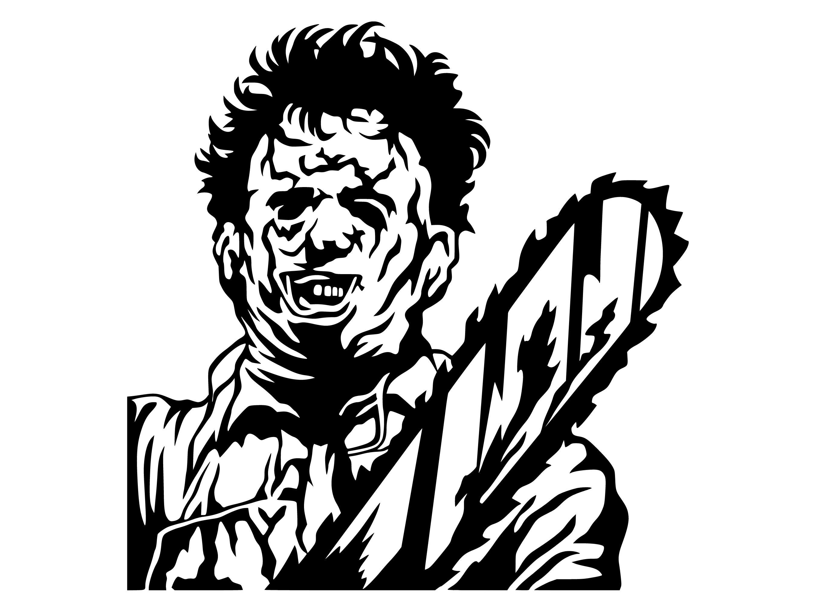 Рисование бензопилы кожаного лица карандашом