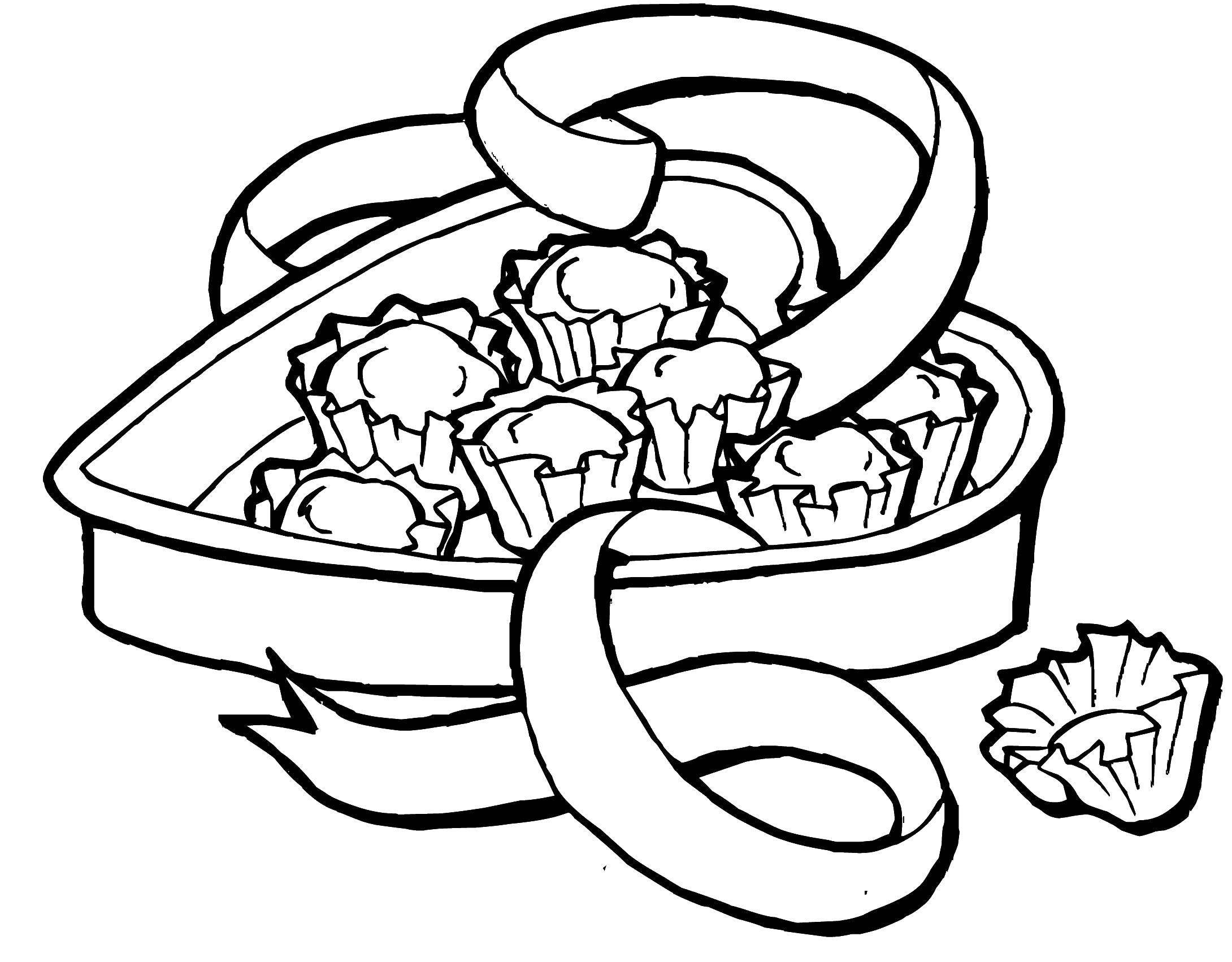 Раскраска шоколадные конфеты в коробке