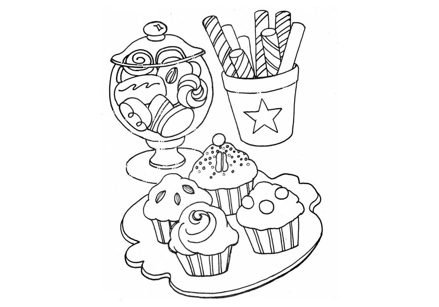Раскраска кексы и сладости