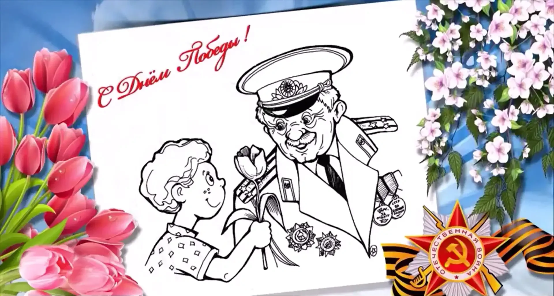 Открытка ветерану раскрасить