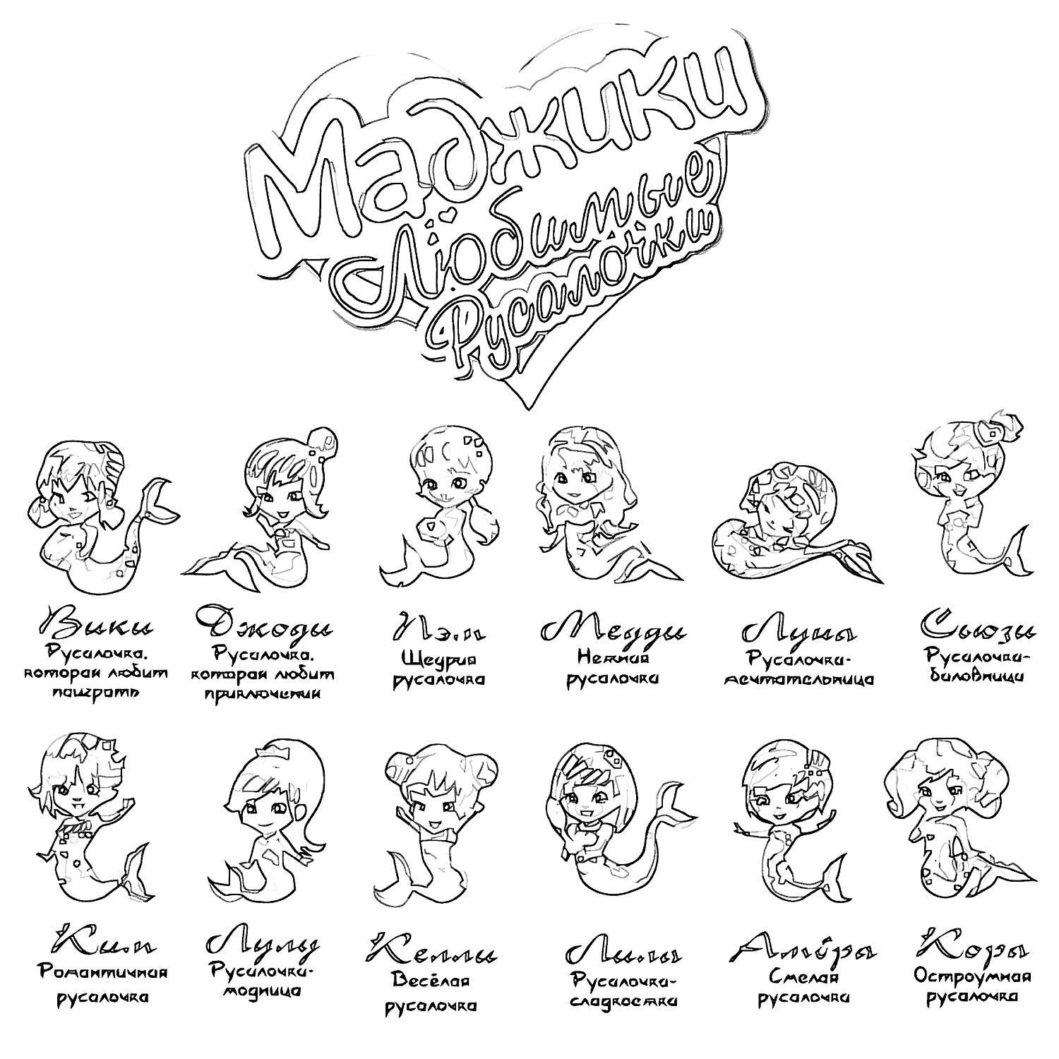 Раскраска милые девочки русалки