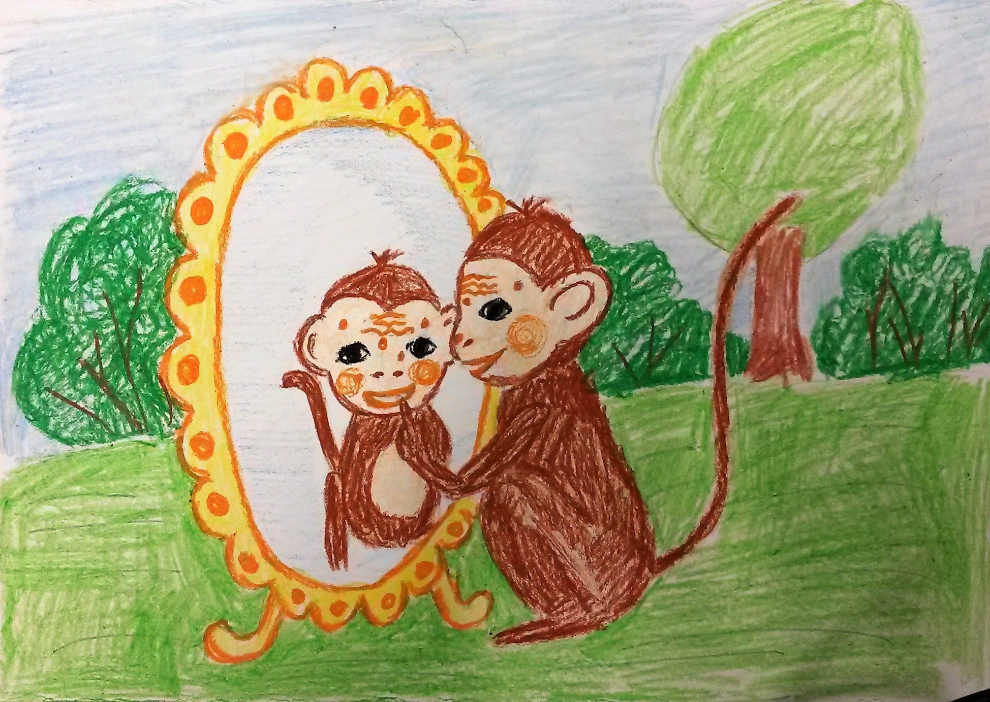 Обезьянка и зеркало басня